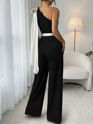 One-Shoulder Bowknot Wide Leg Jumpsuit