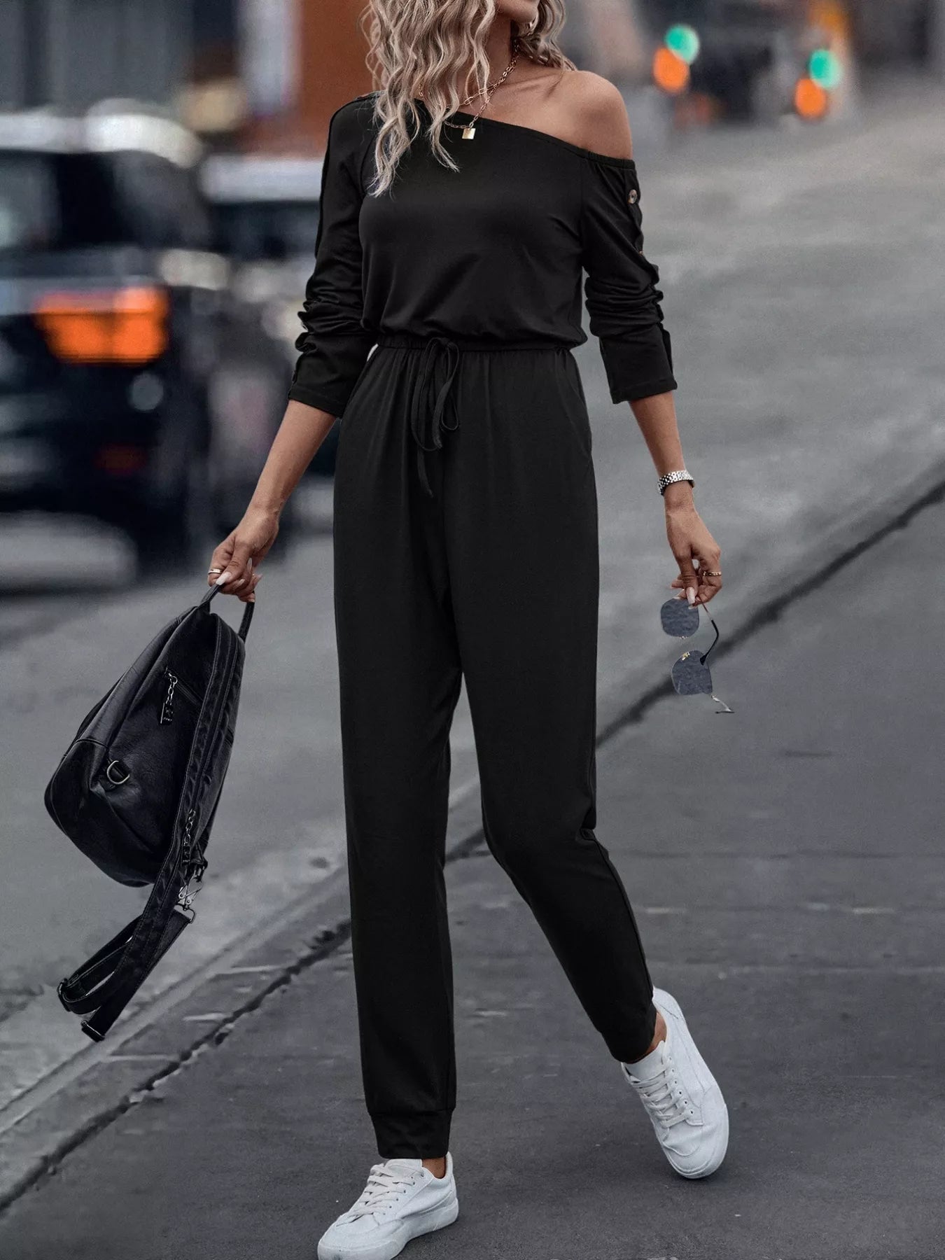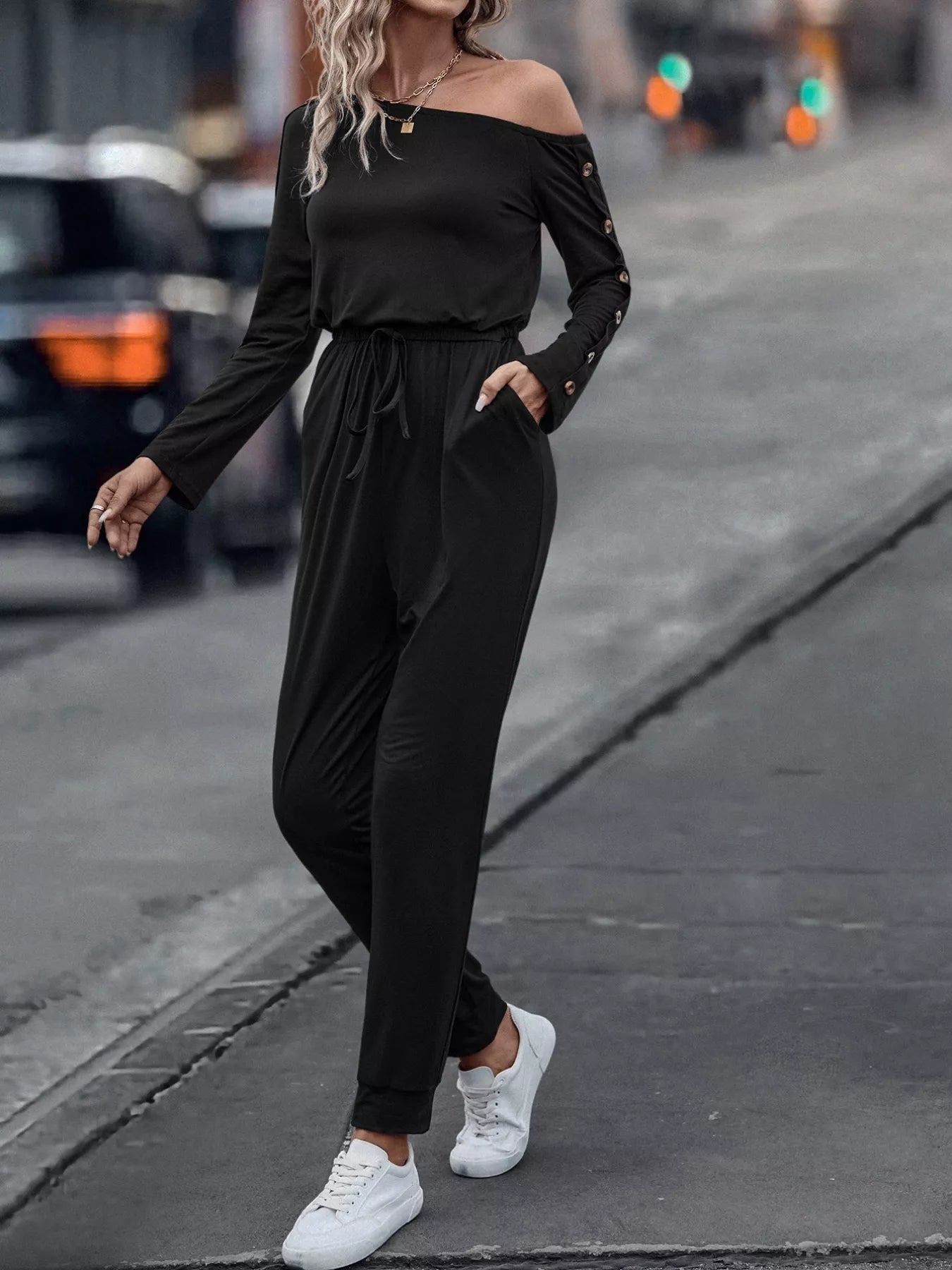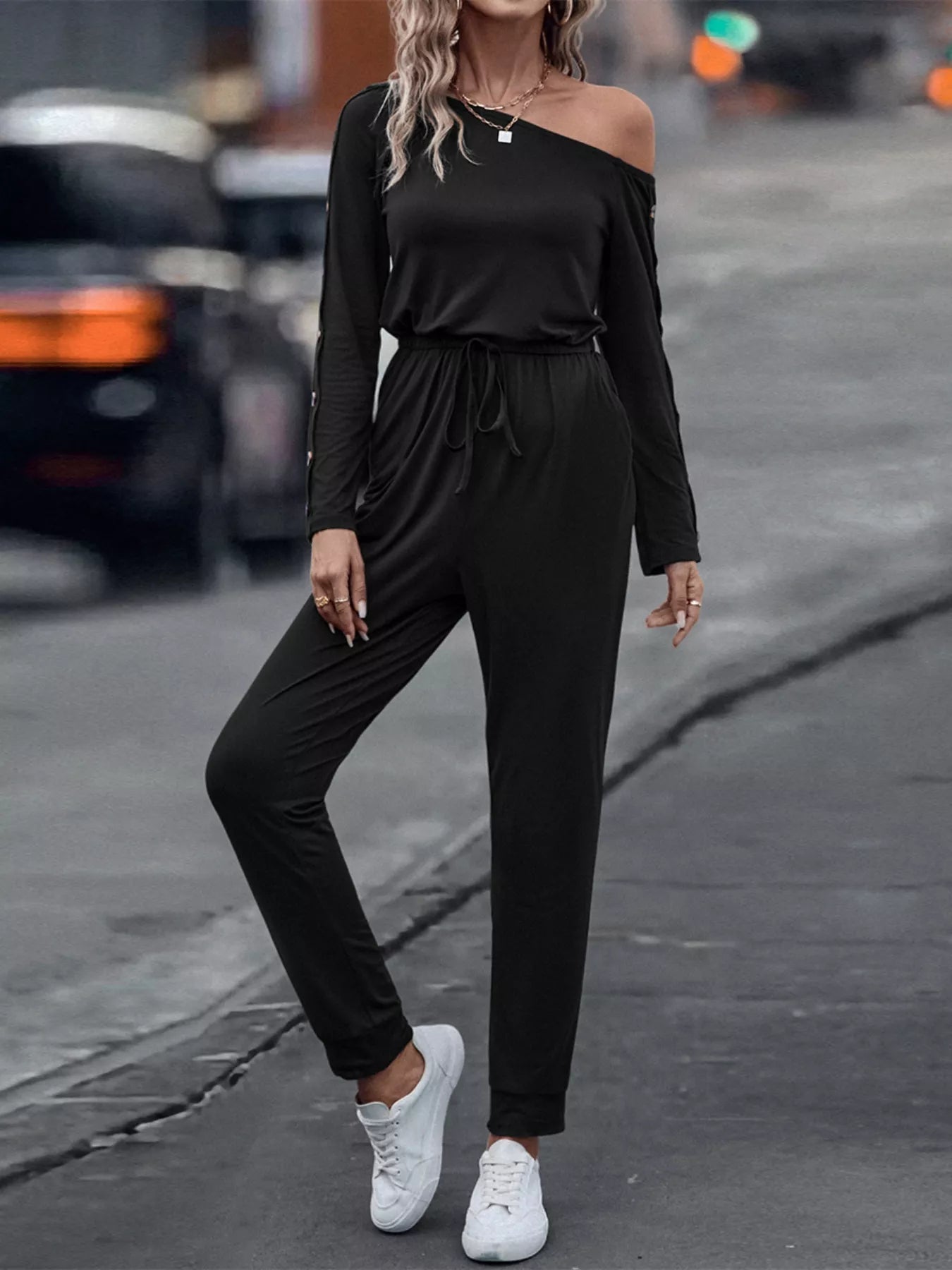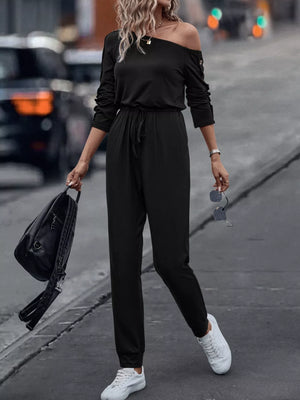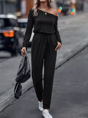 One Shoulder Long Sleeve Jumpsuit