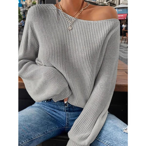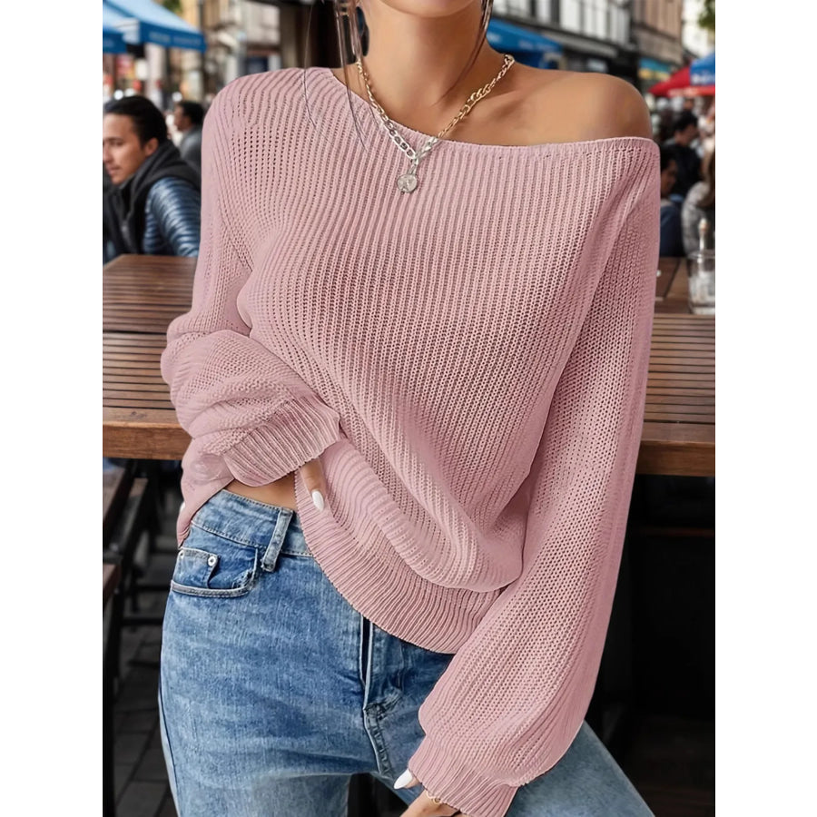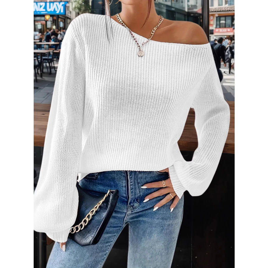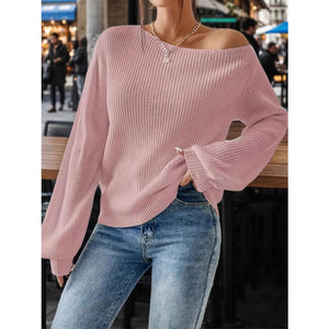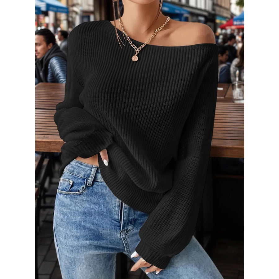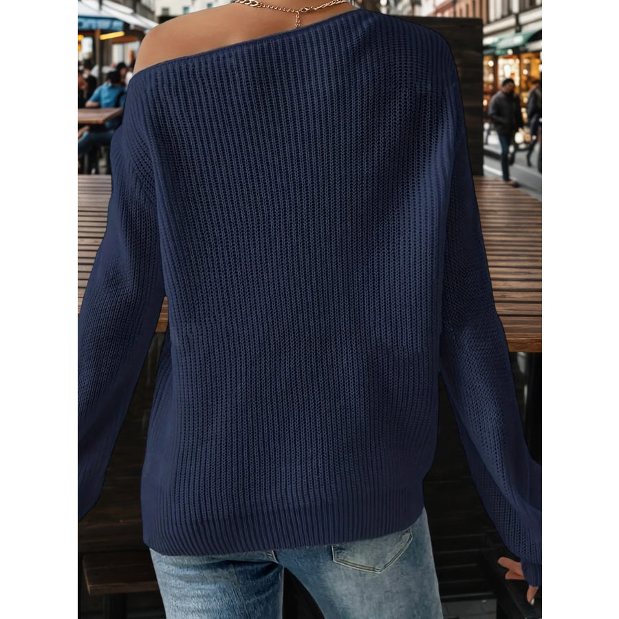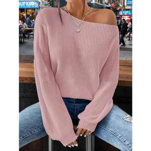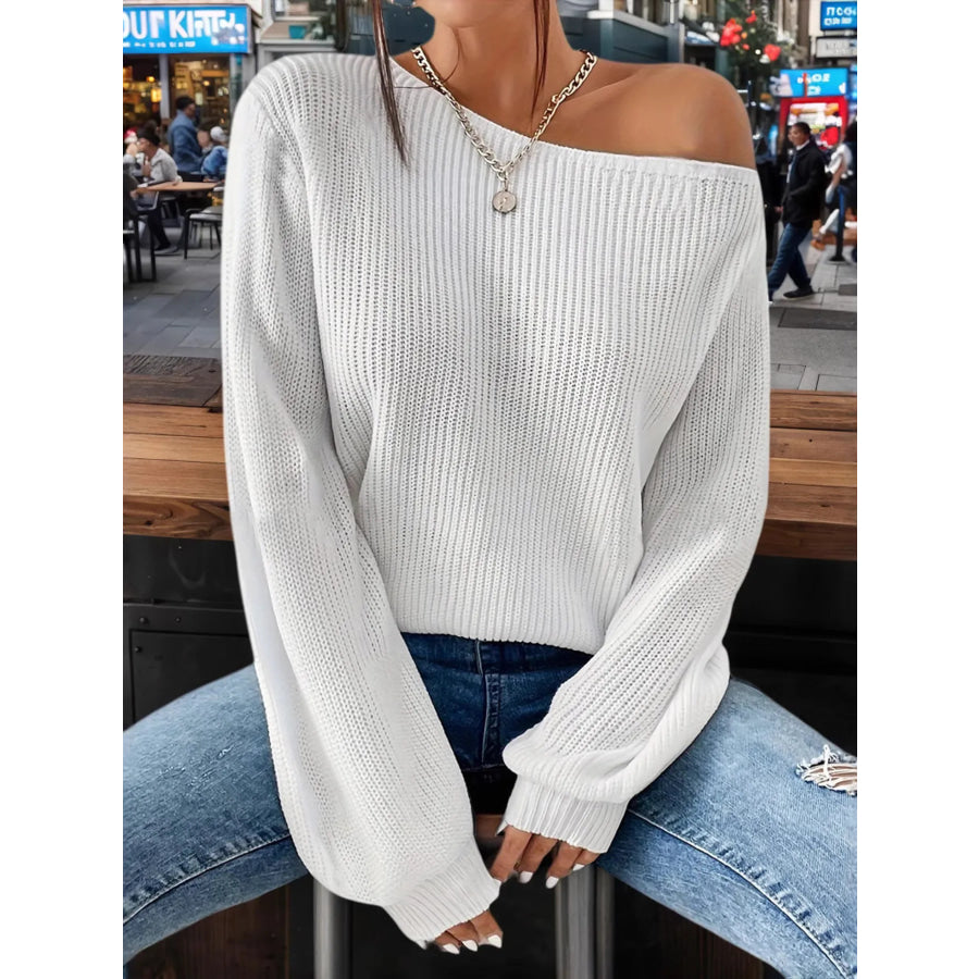 One-Shoulder Ribbed Knit Top with Relaxed Fit
