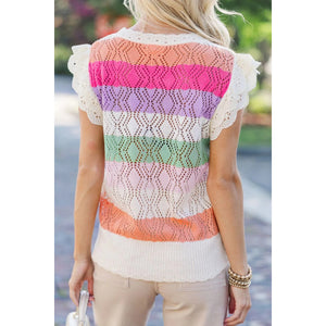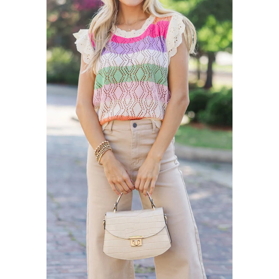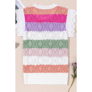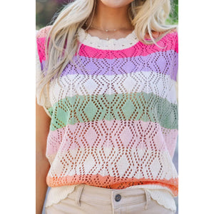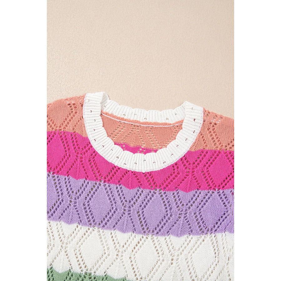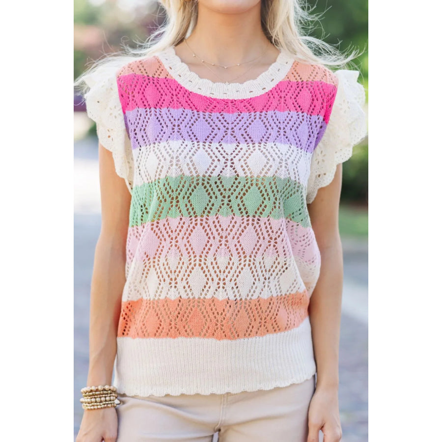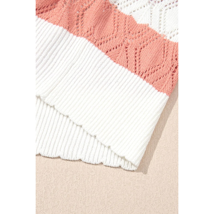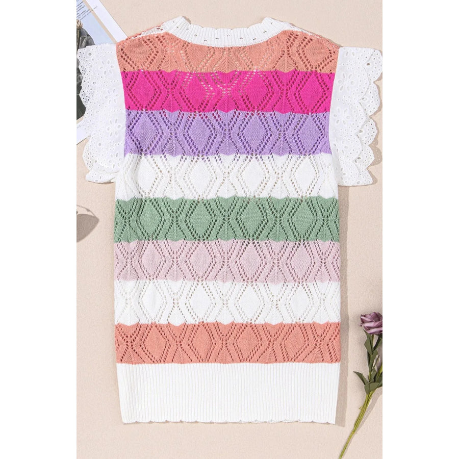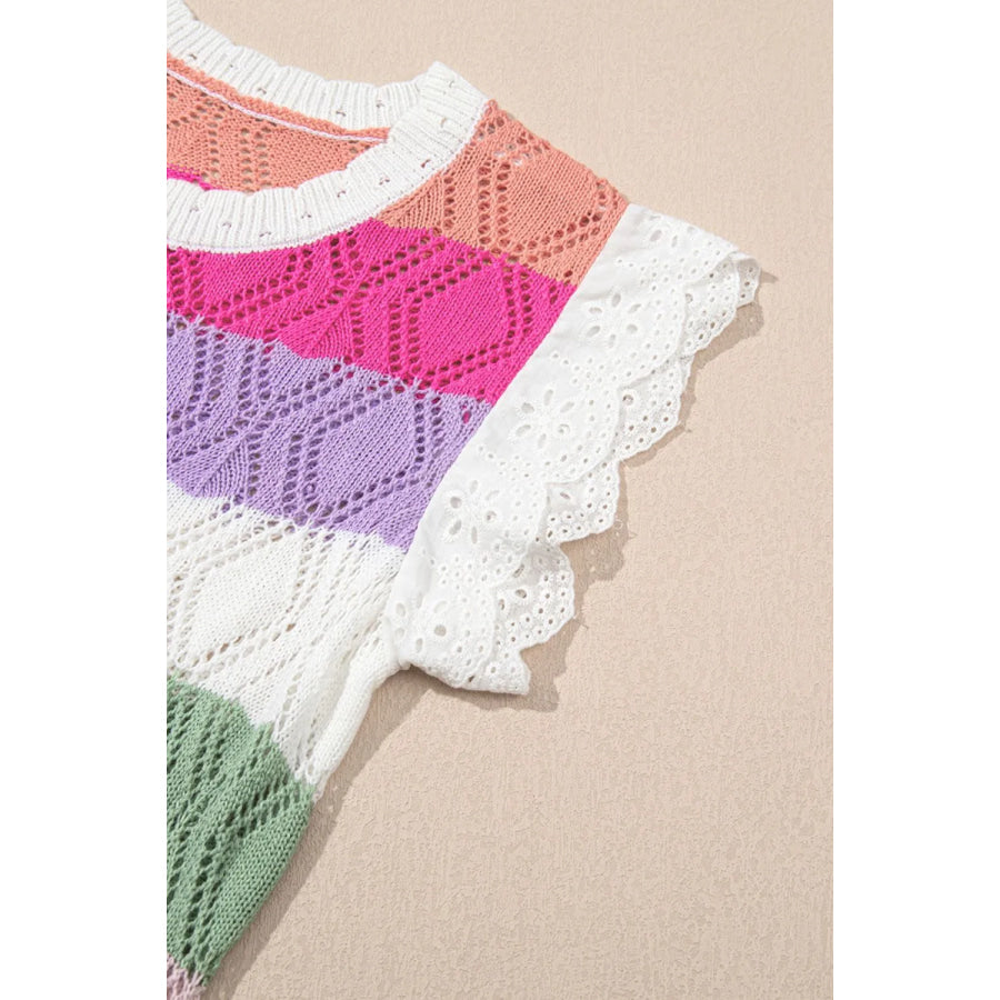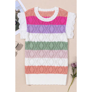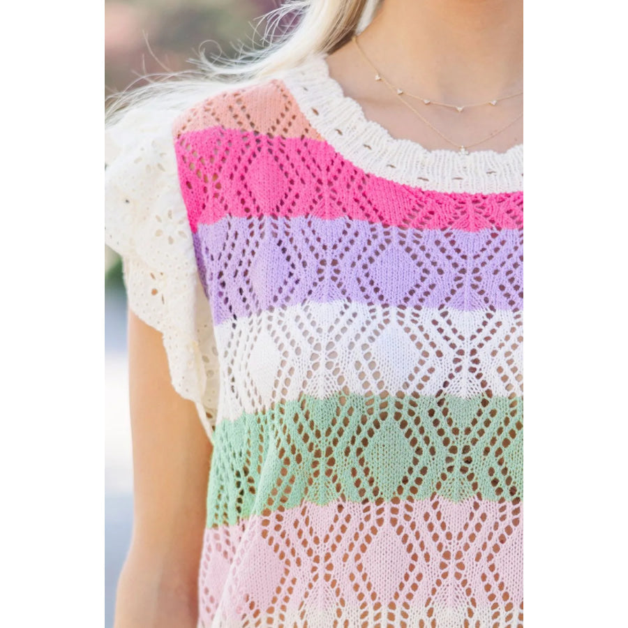 Openwork Round Neck Cap Sleeve Knit Top