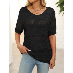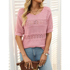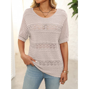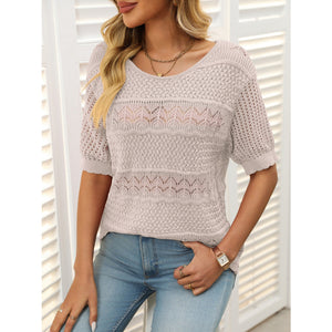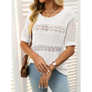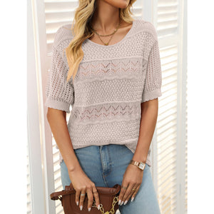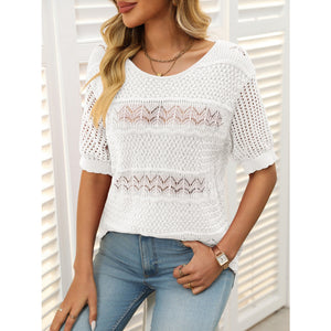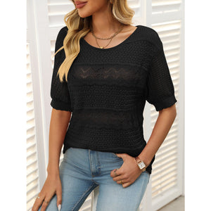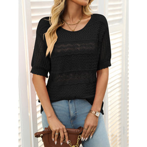 Openwork Round Neck Half Sleeve Knit Top