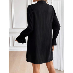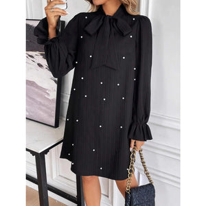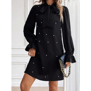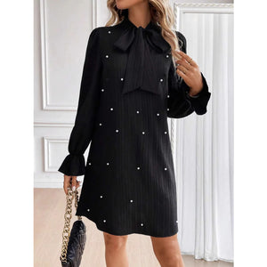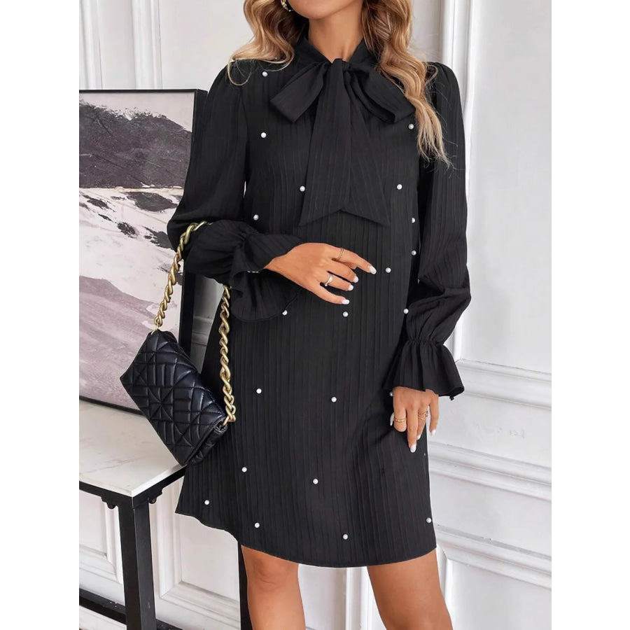 Pearl Embellished Bow Tie Flounce Sleeve Dress