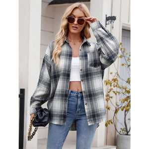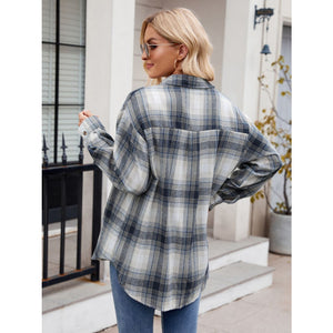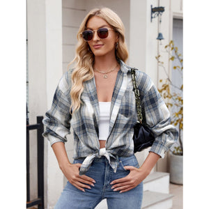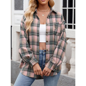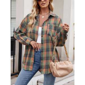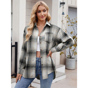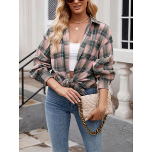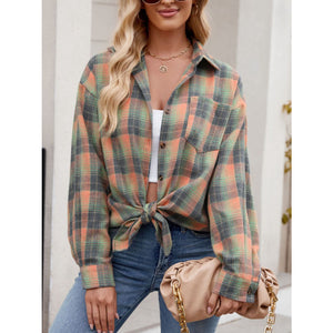 Plaid Collared Neck Long Sleeve Shirt