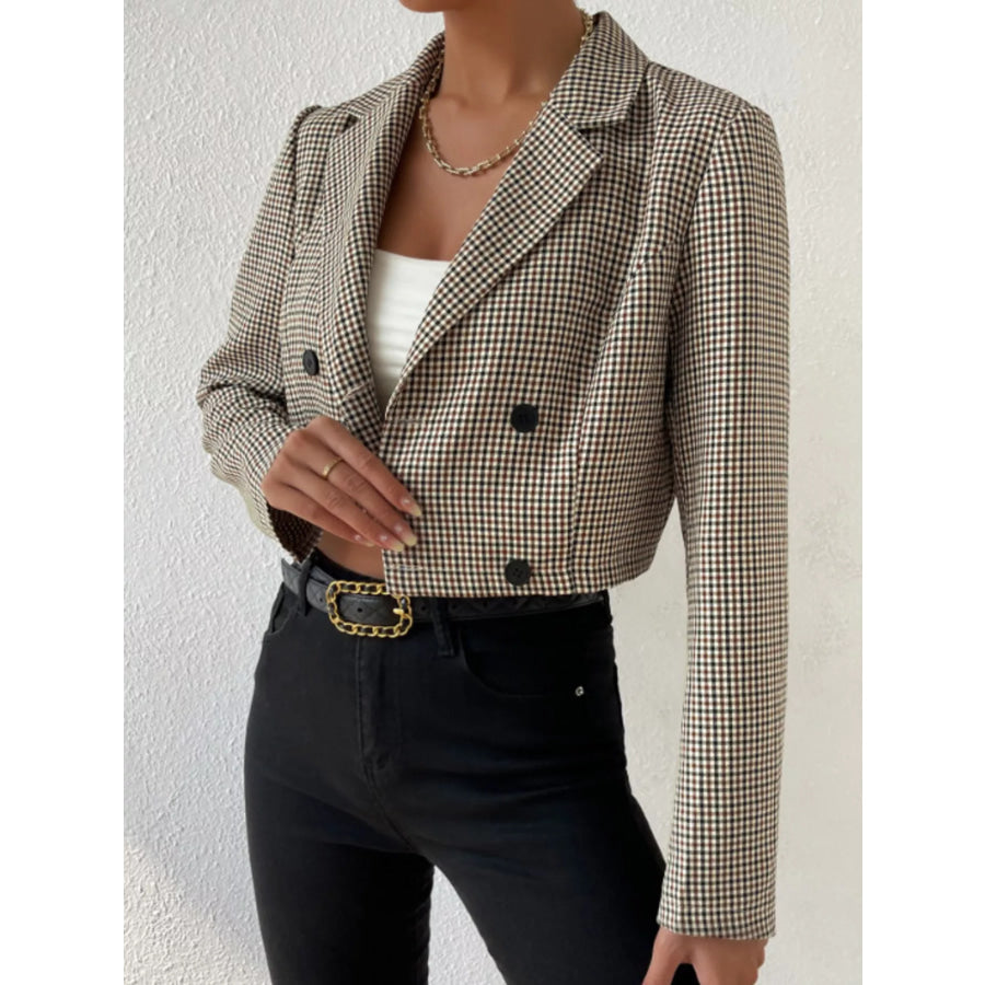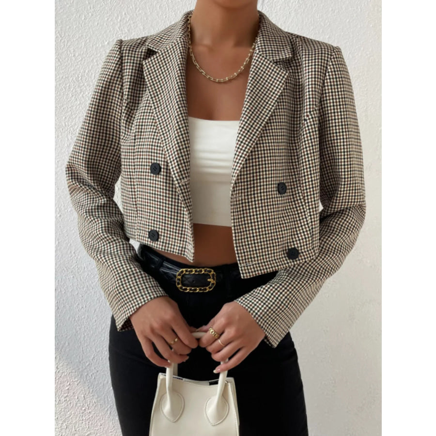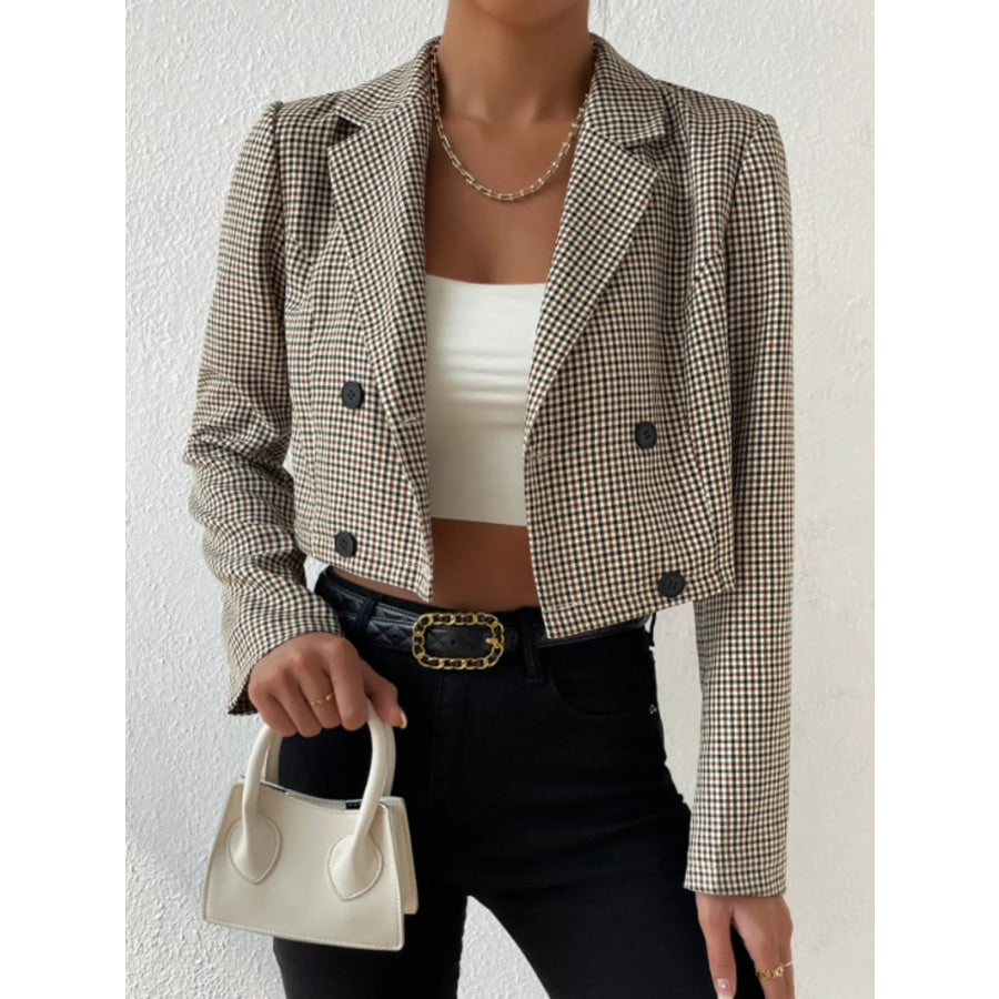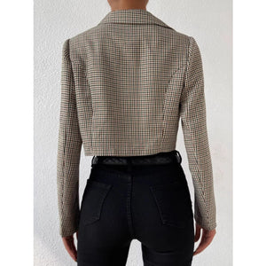 Plaid Lapel Collar Cropped Blazer
