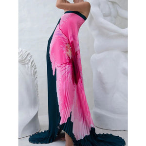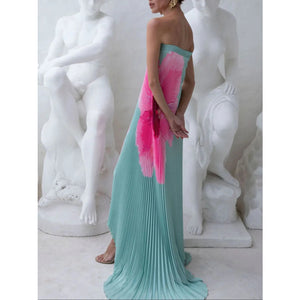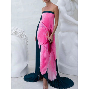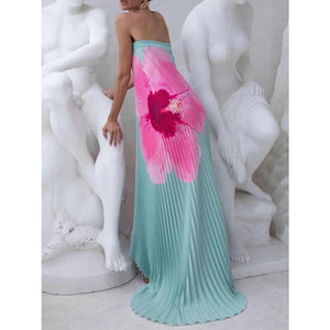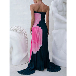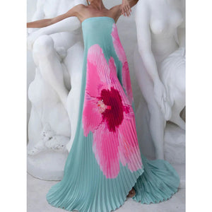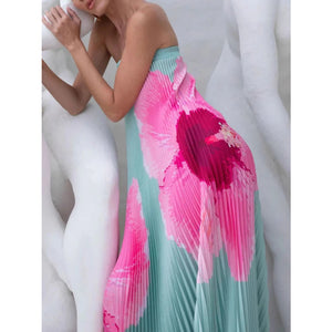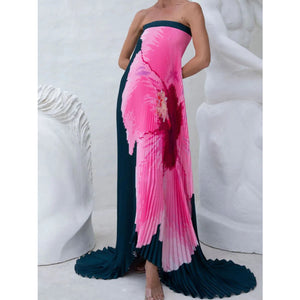 Pleated Printed Tube Floor Length Dress