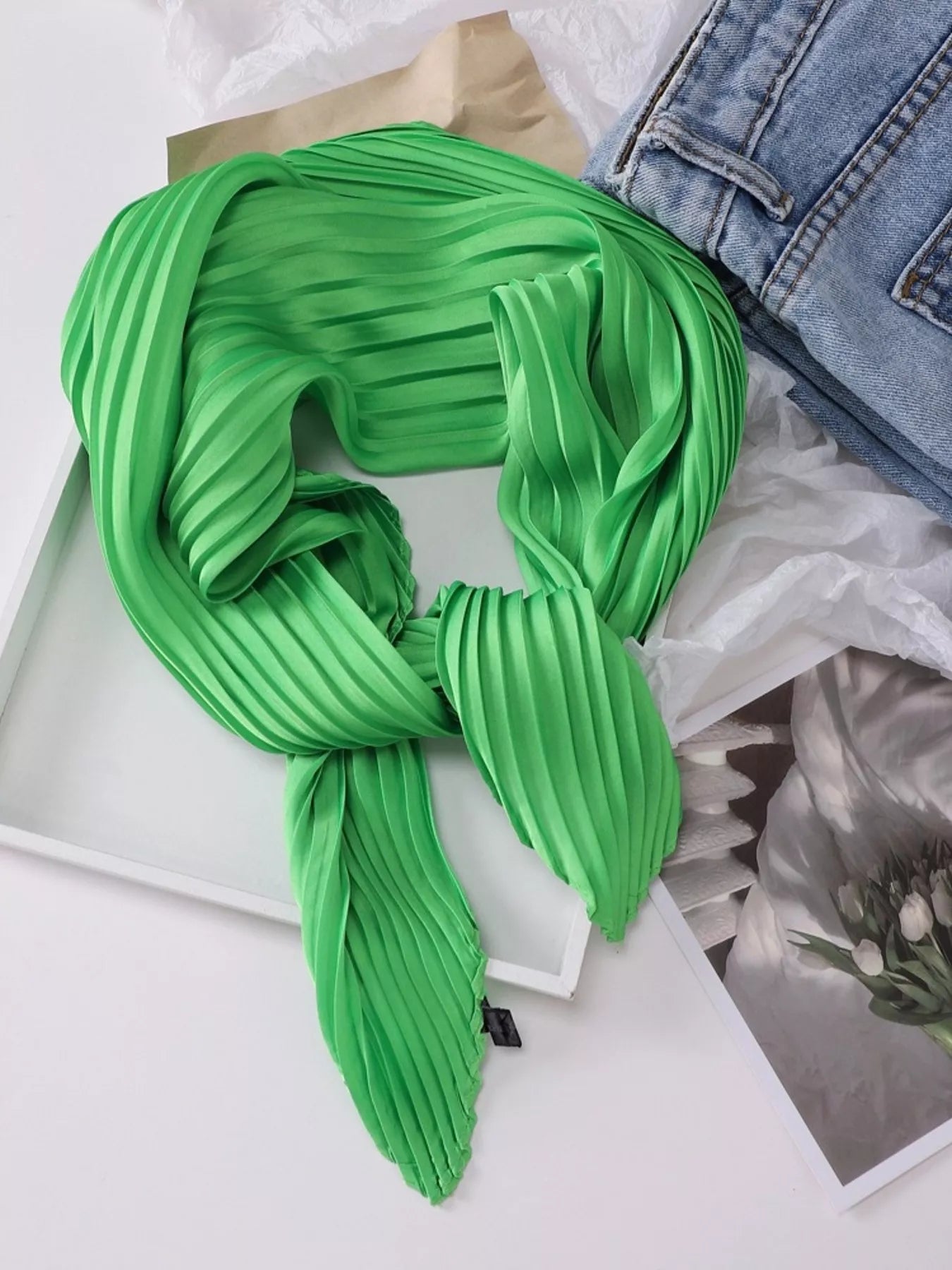 Pleated Satin Scarf
