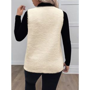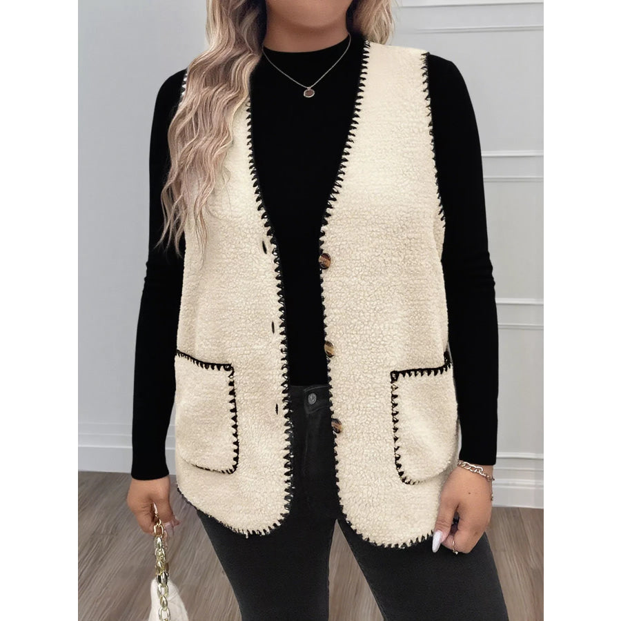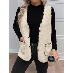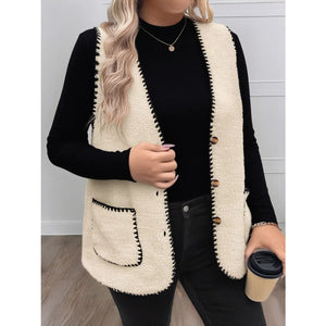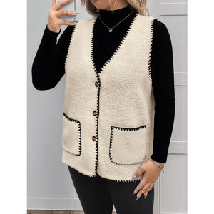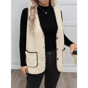 Plus Size Contrast Trim Button Up Vest Coat