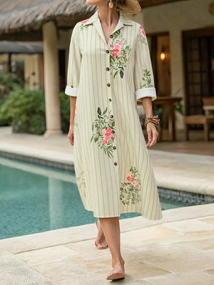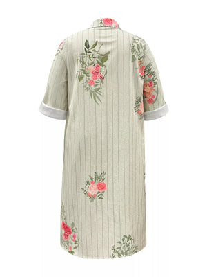 Plus Size Floral Striped Button-Down Midi Shirt Dress