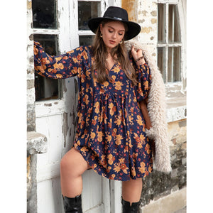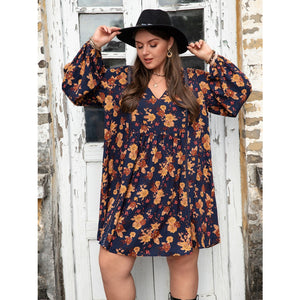 Plus Size Floral V-Neck Balloon Sleeve Dress