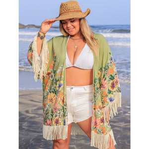 Plus Size Fringe Open Front Cover-Up