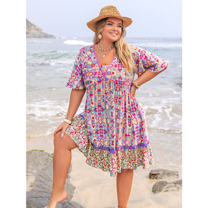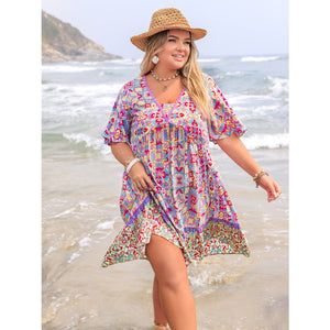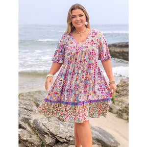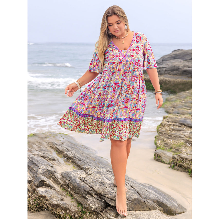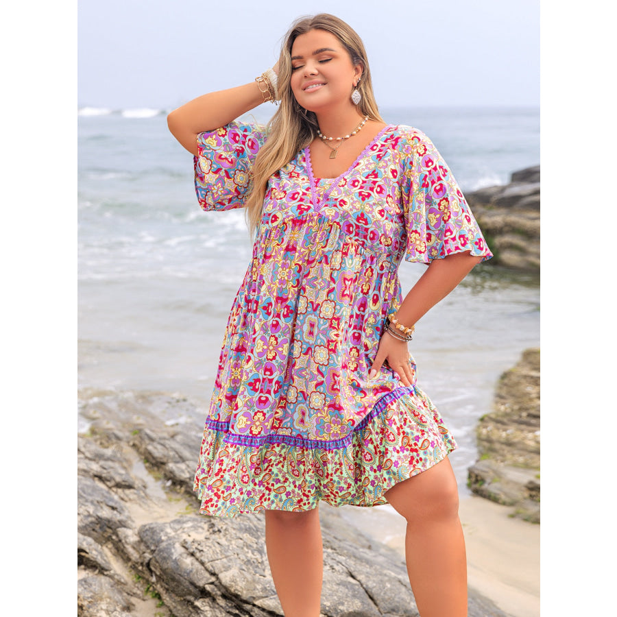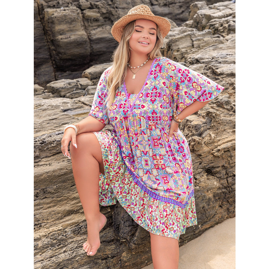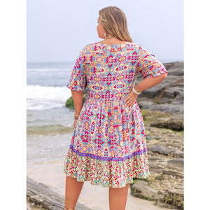Plus Size Lace Detail Printed Half Sleeve Dress