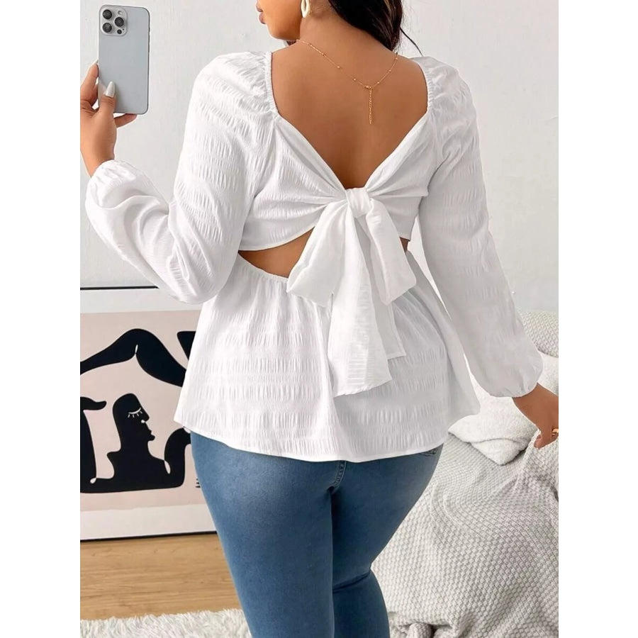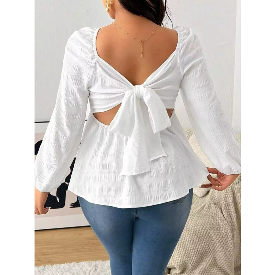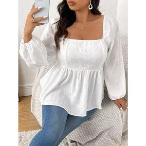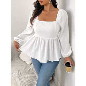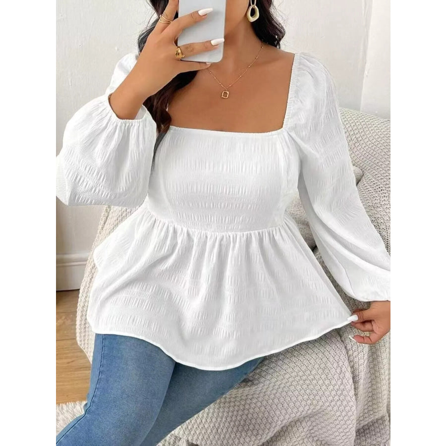 Plus Size Square Neck Long Sleeve Peplum Blouse