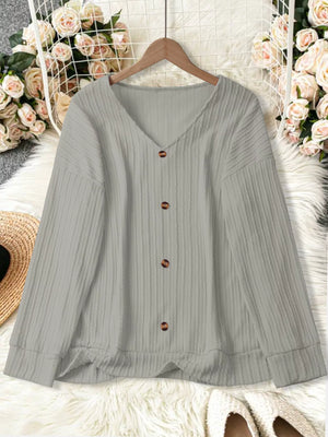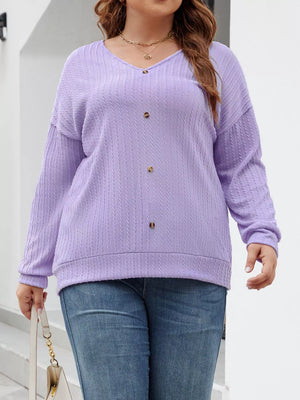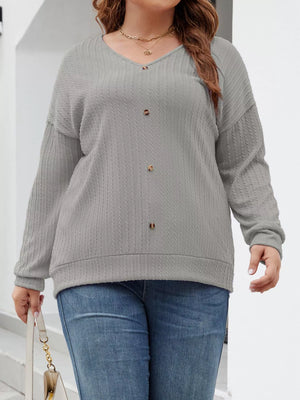 Plus Size V-Neck Dropped Shoulder Blouse