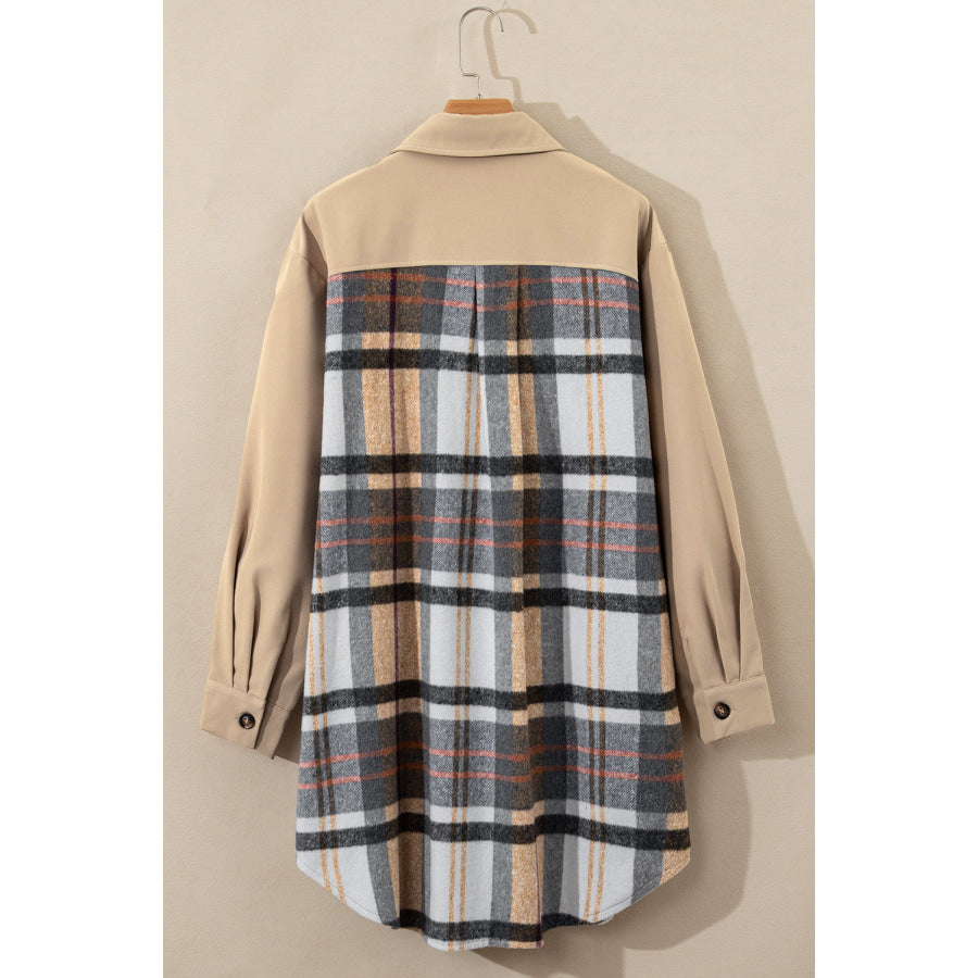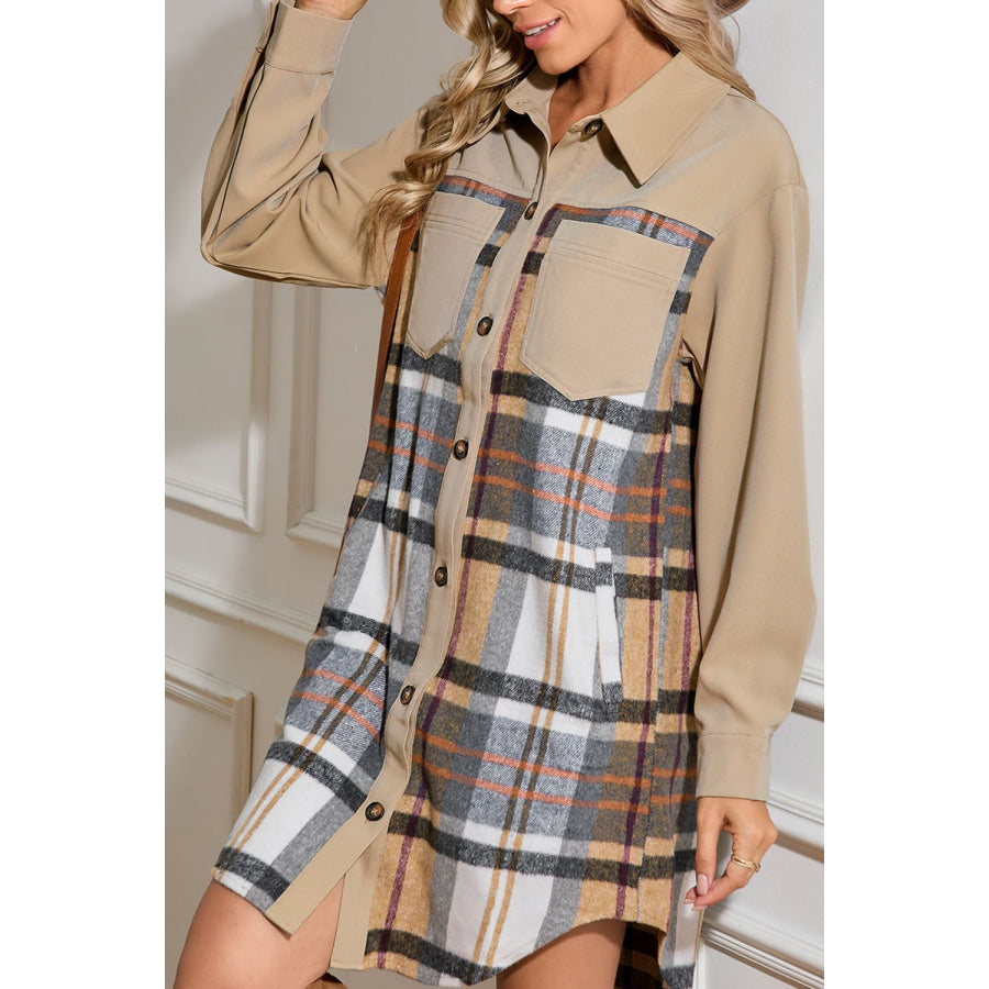 Pocketed Plaid Long Sleeve Mini Shirt Dress