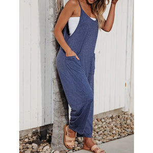 Pocketed V-Neck Spaghetti Strap Jumpsuit