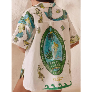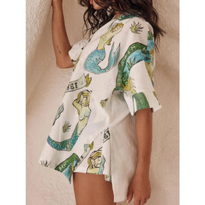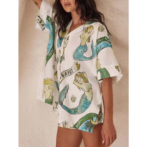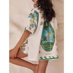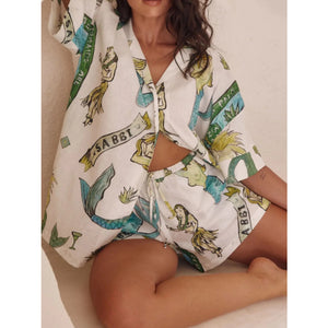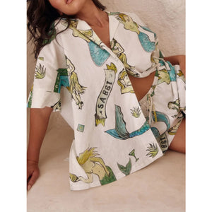 Printed Button Up Shirt and Shorts Set