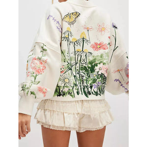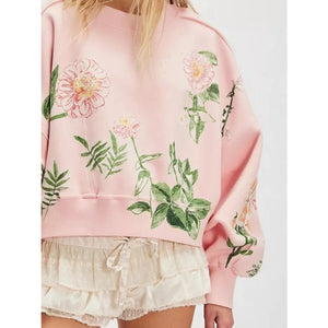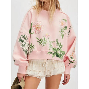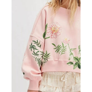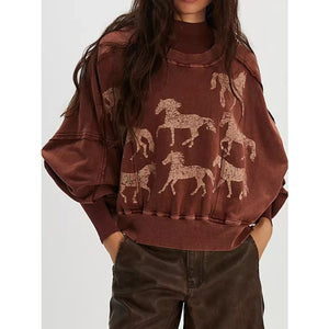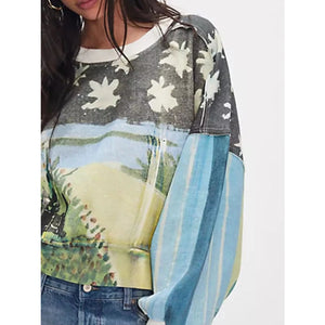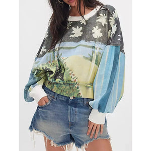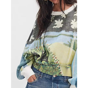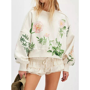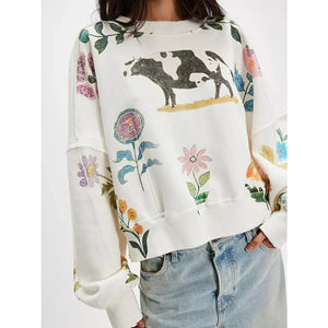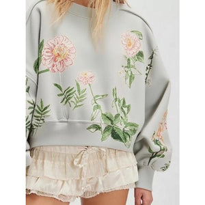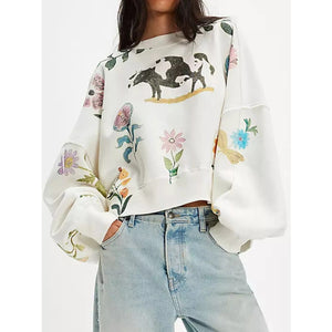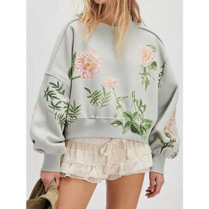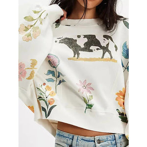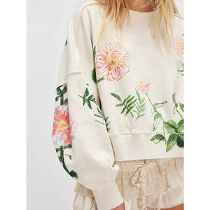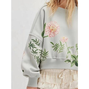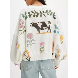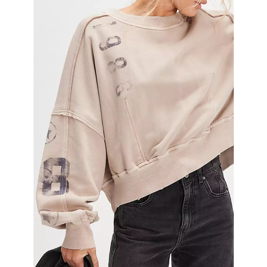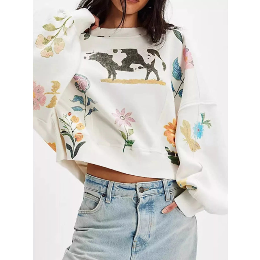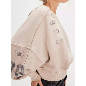 Printed Round Neck Dropped Shoulder Sweatshirt