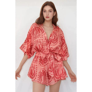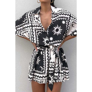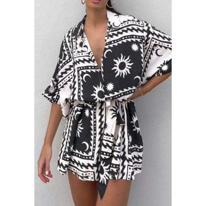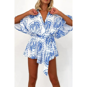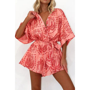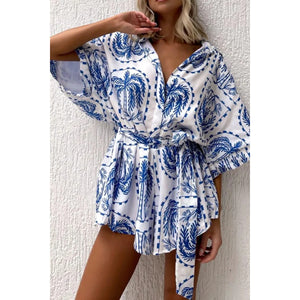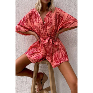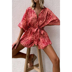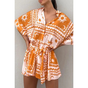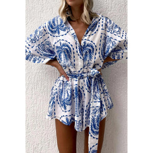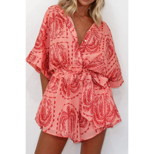Printed Tie Waist Romper