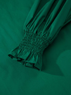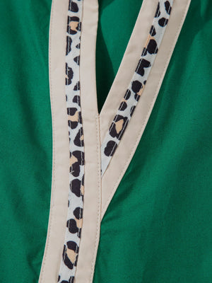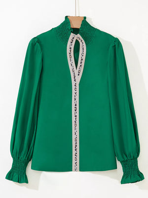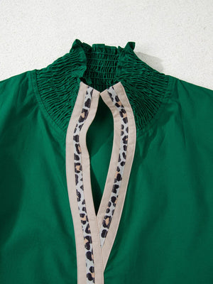 Puffy Flounce Sleeve Leopard Trim V Neck Blouse