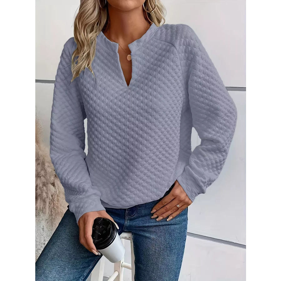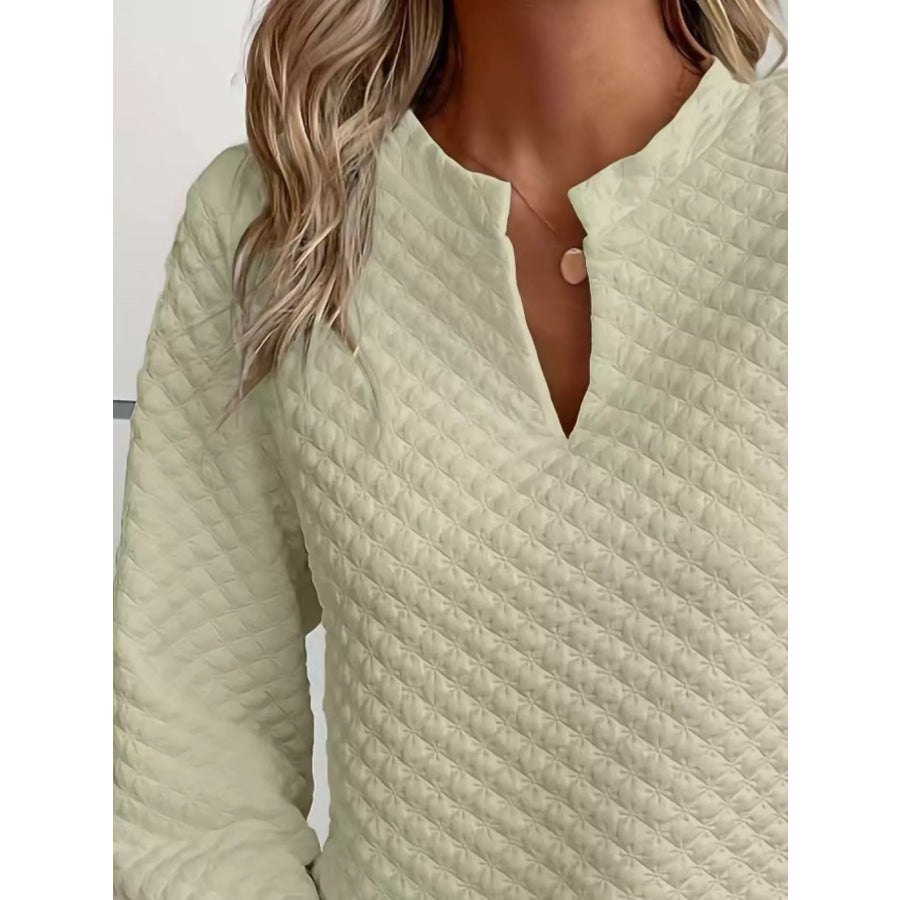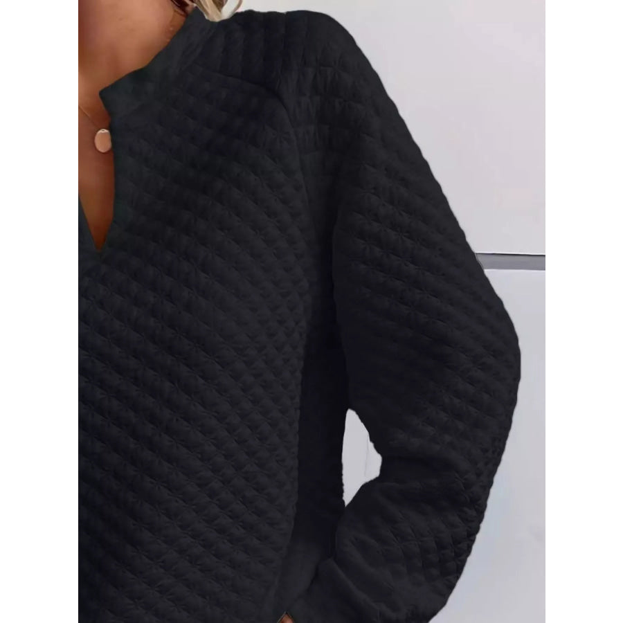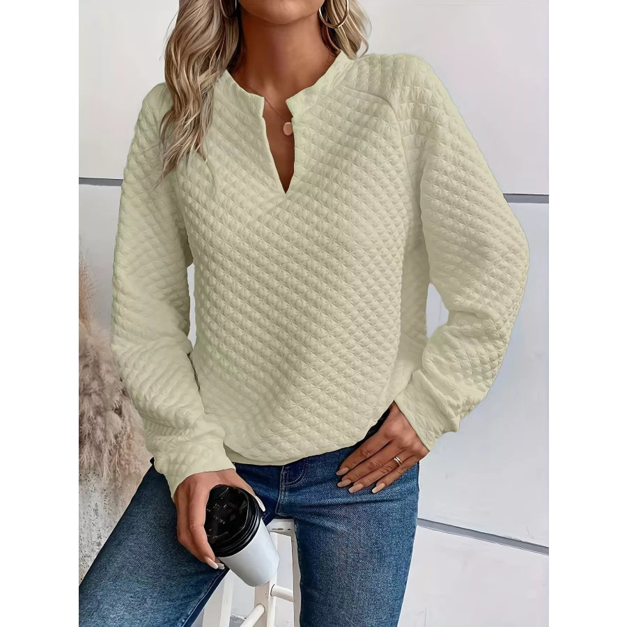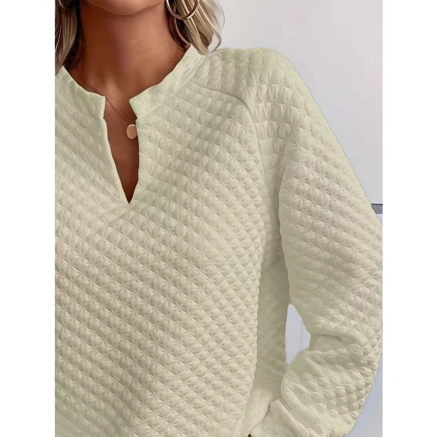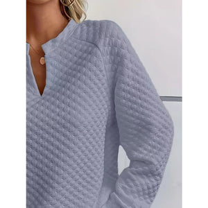 Quilted Texture Long Sleeve Sweatshirt with Notched Neck