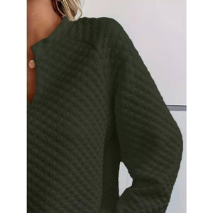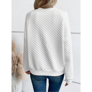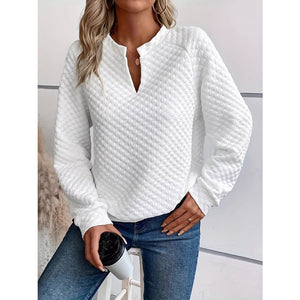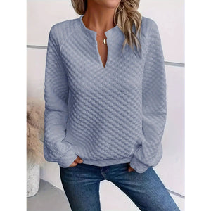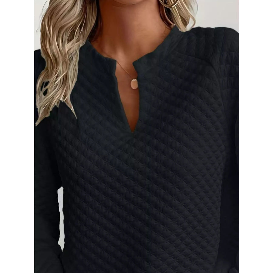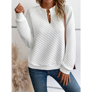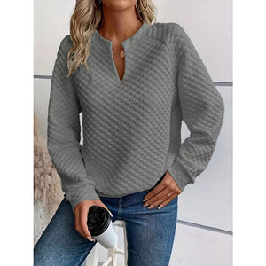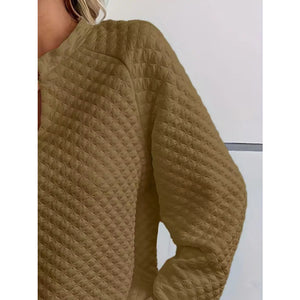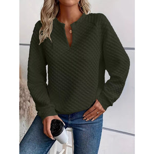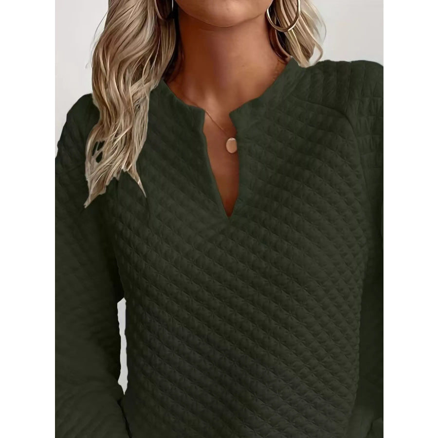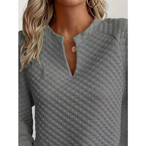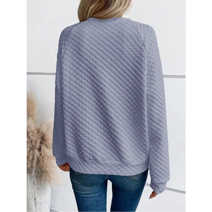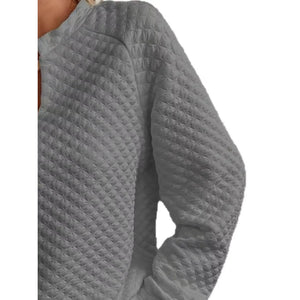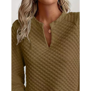 Quilted Texture Long Sleeve Sweatshirt with Notched Neck