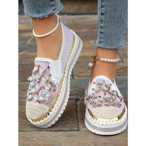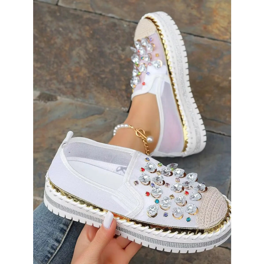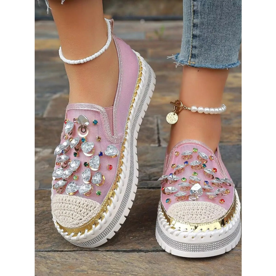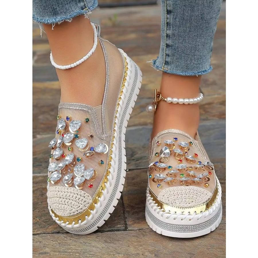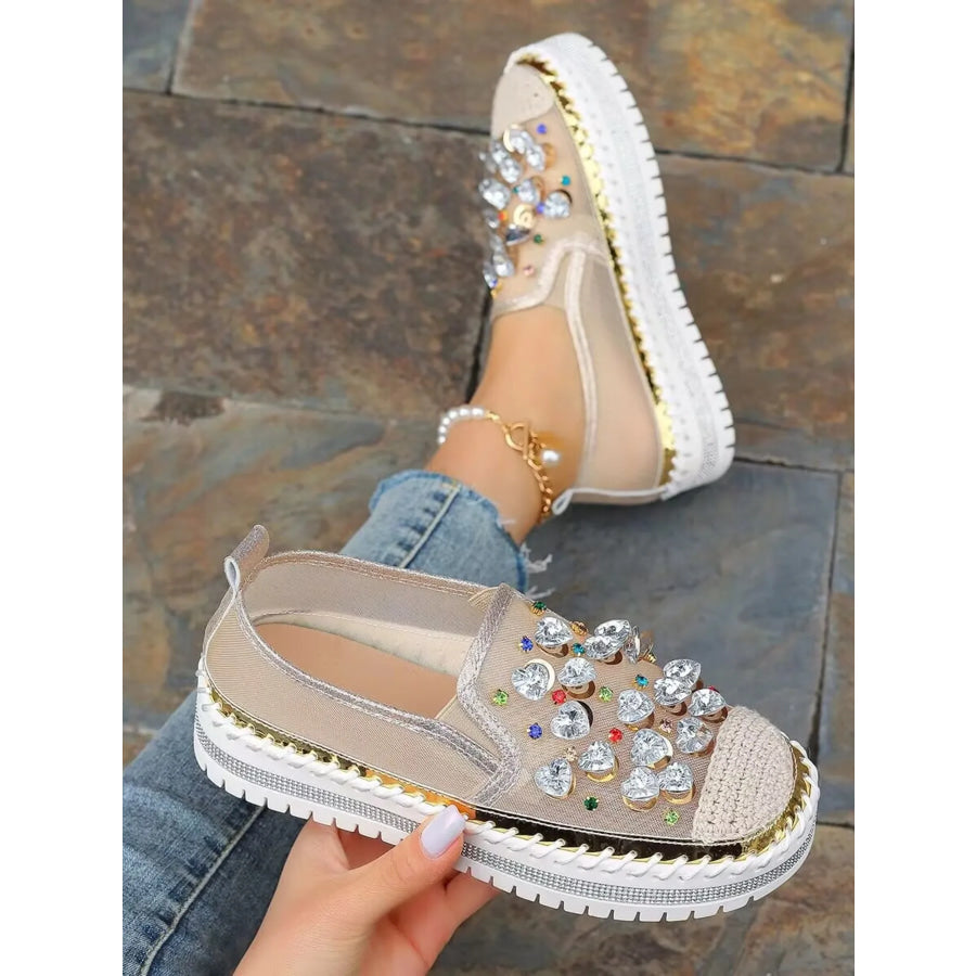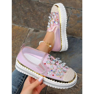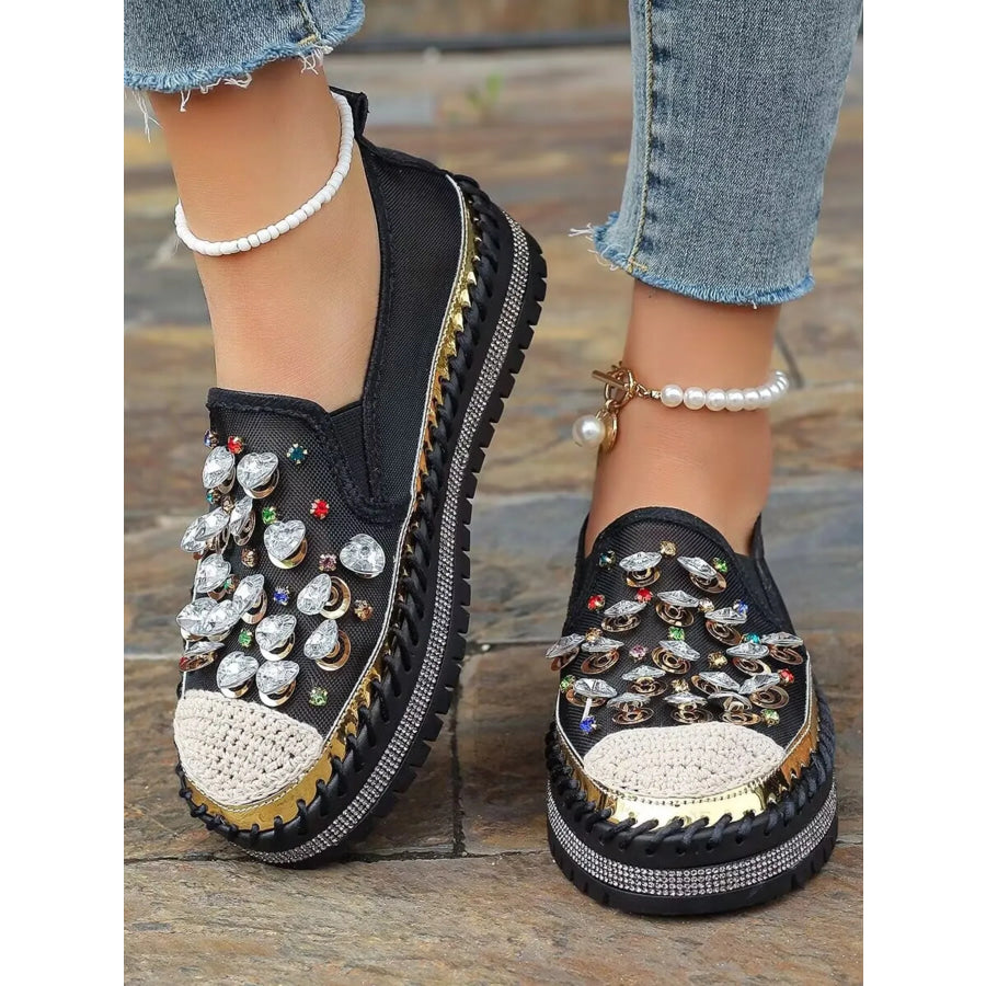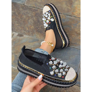 Rhinestone Round Toe Platform Loafers