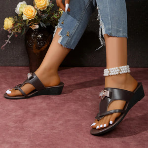 Rhinestone Toe Post Wedge Sandals