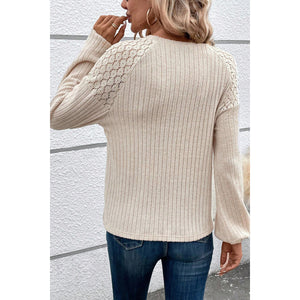 Ribbed Decorative Button Round Neck T-Shirt