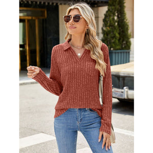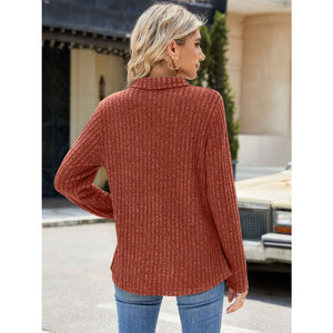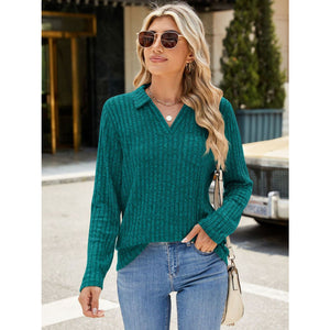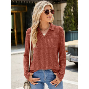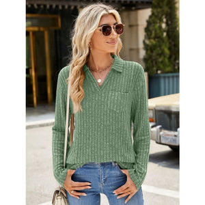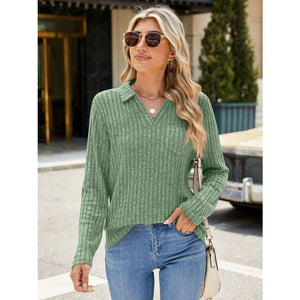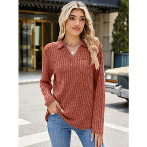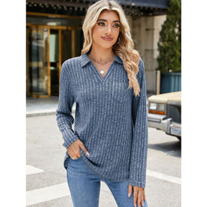 Ribbed Johnny Collar Long Sleeve T-Shirt