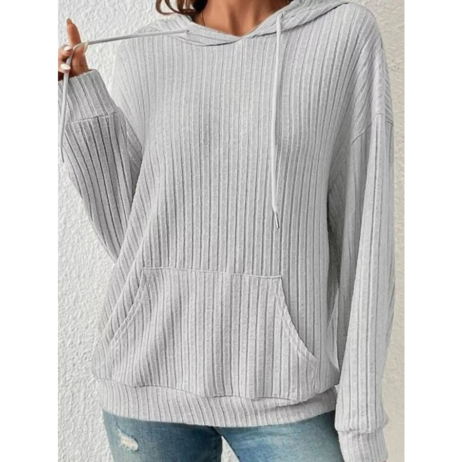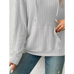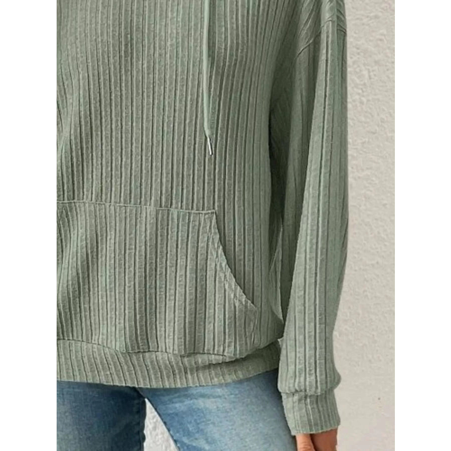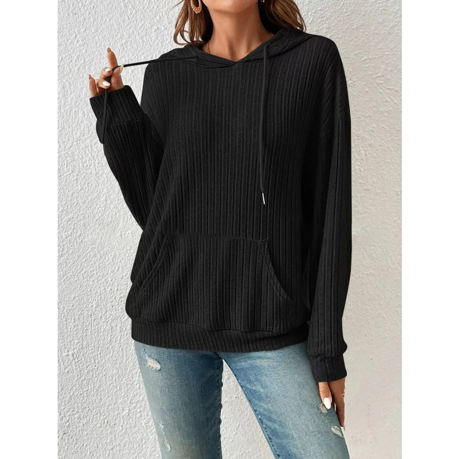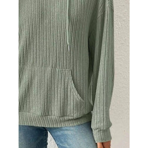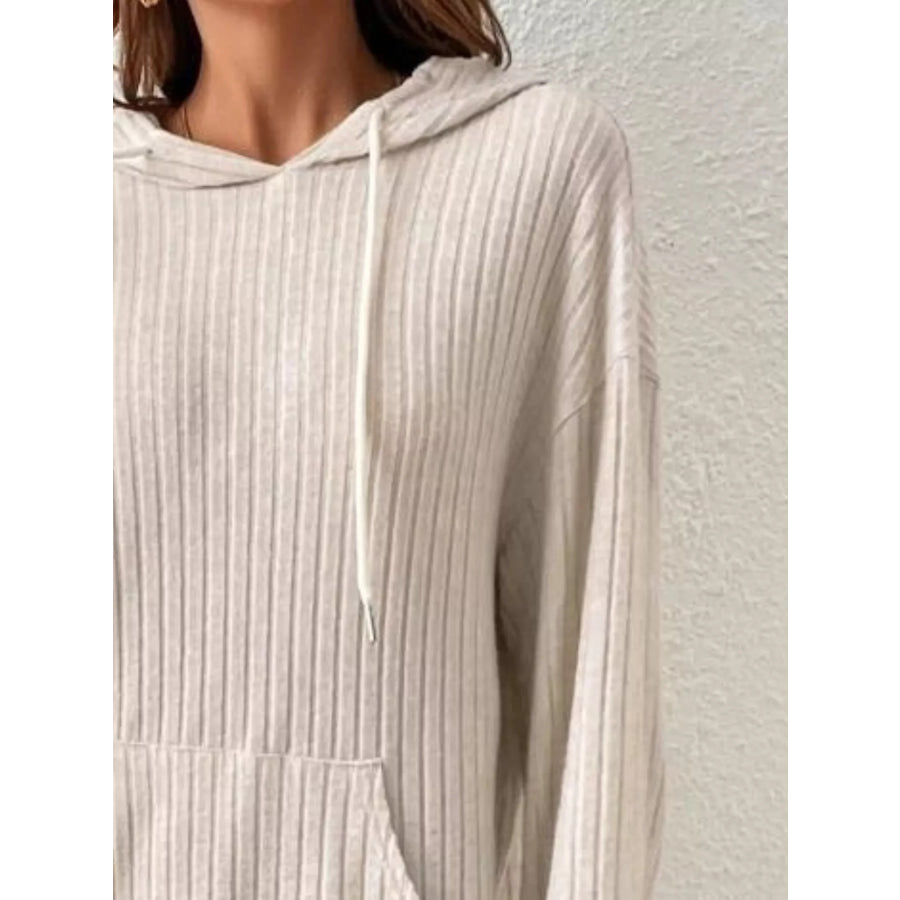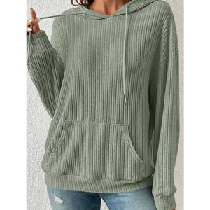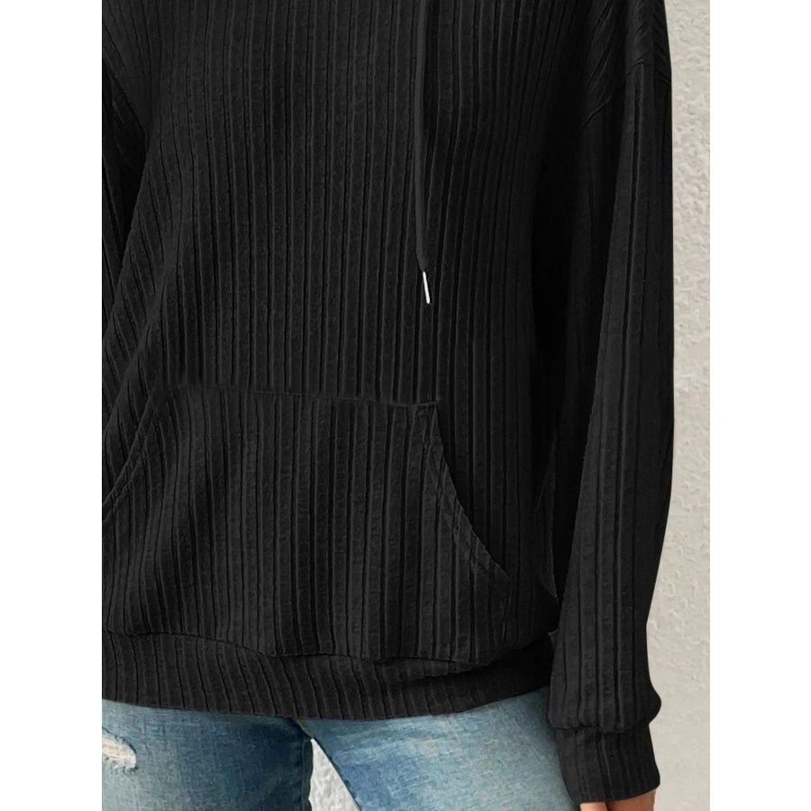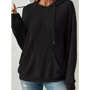 Ribbed Knit Long Sleeve Drawstring Hoodie