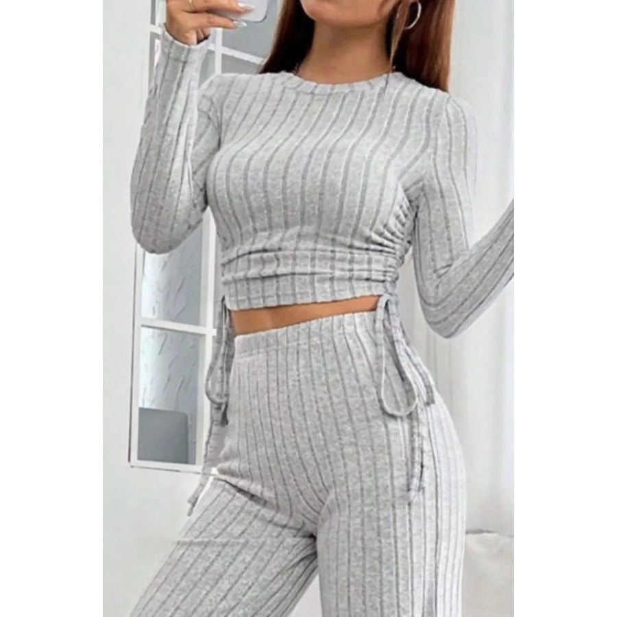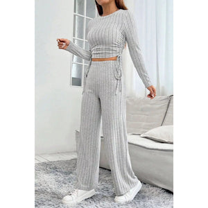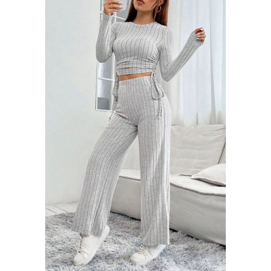 Ribbed Knit Long Sleeve Top & Wide Leg Pants Set