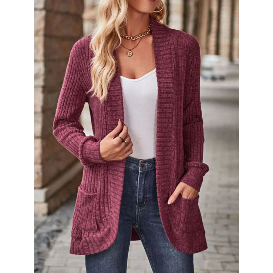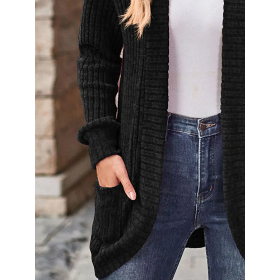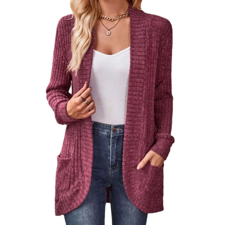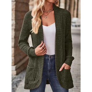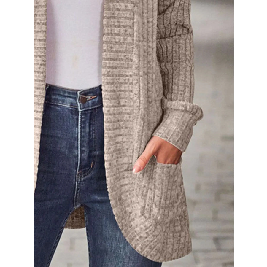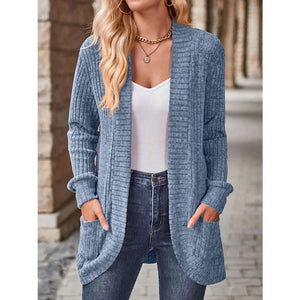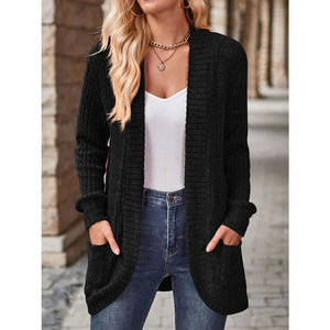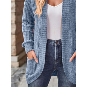 Ribbed Knit Open Front Cardigan with Pockets