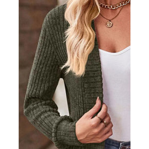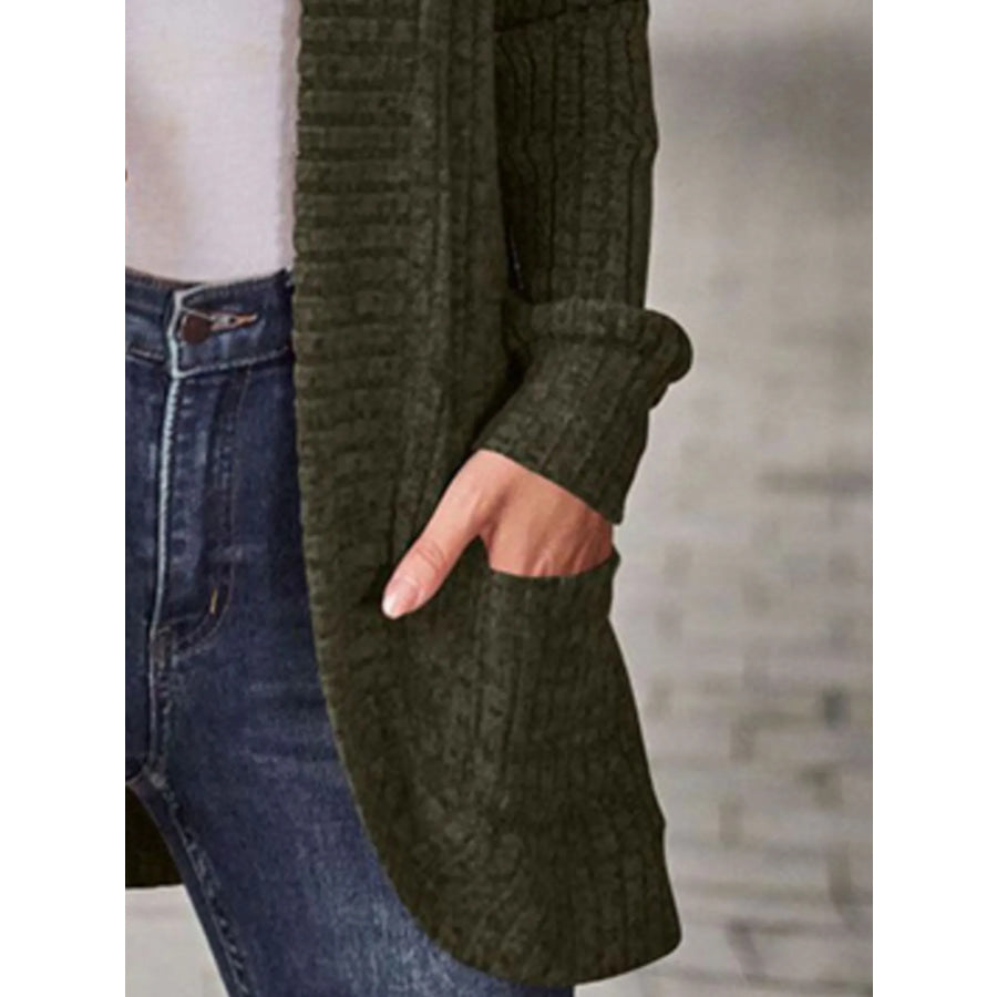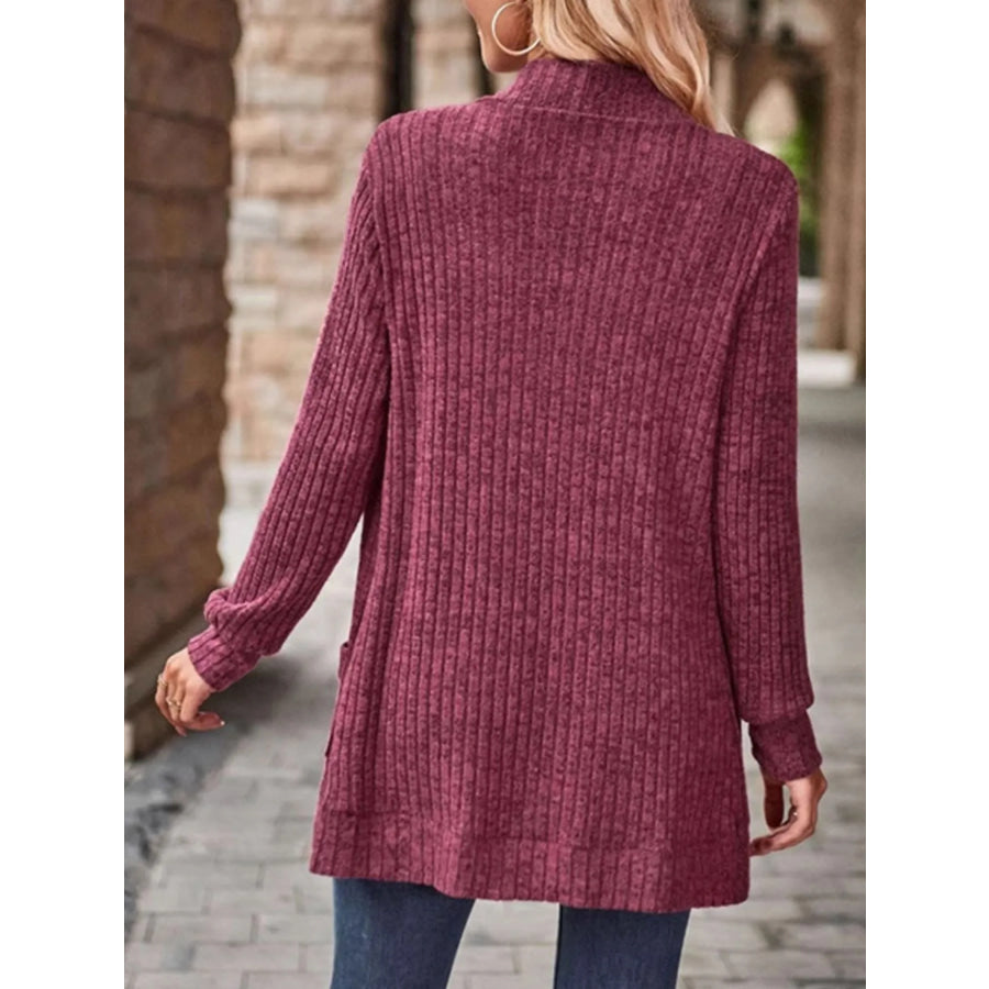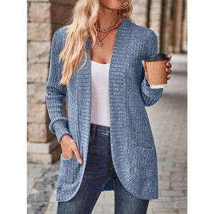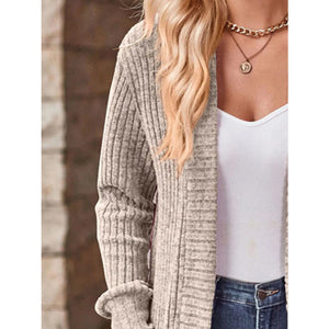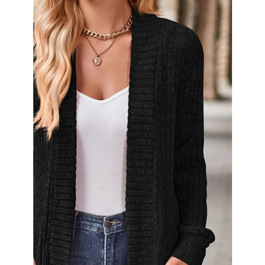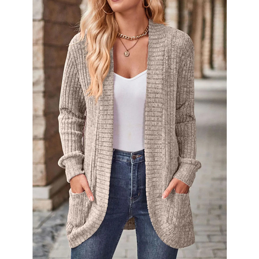 Ribbed Knit Open Front Cardigan with Pockets