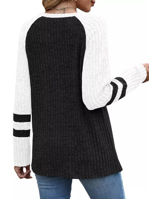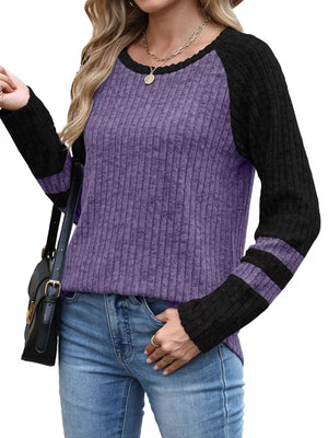 Ribbed Knit Raglan Long Sleeve T-Shirt