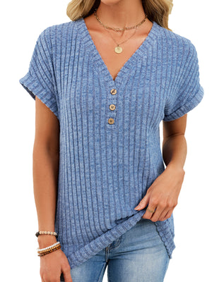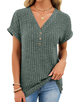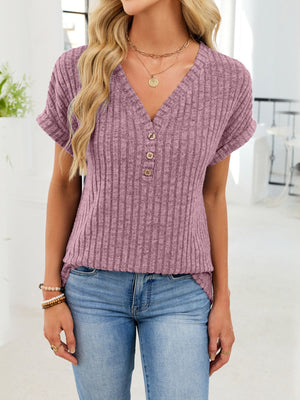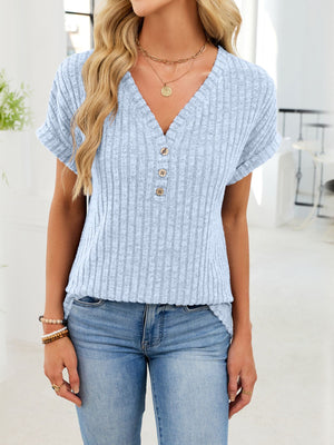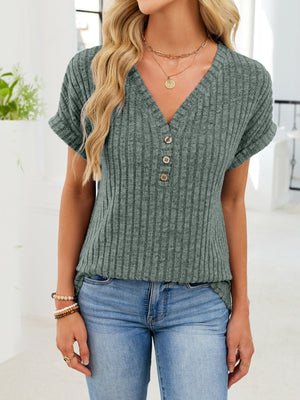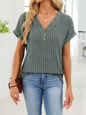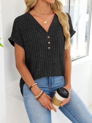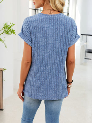 Ribbed Knit V-Neck T-Shirt