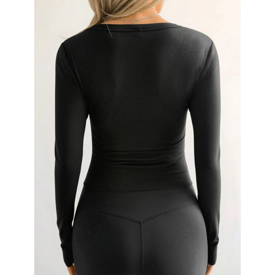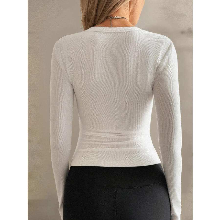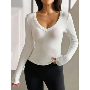 Ribbed V-Neck Long Sleeve T-Shirt