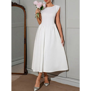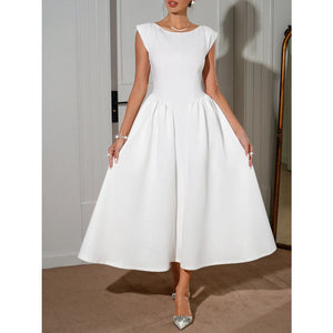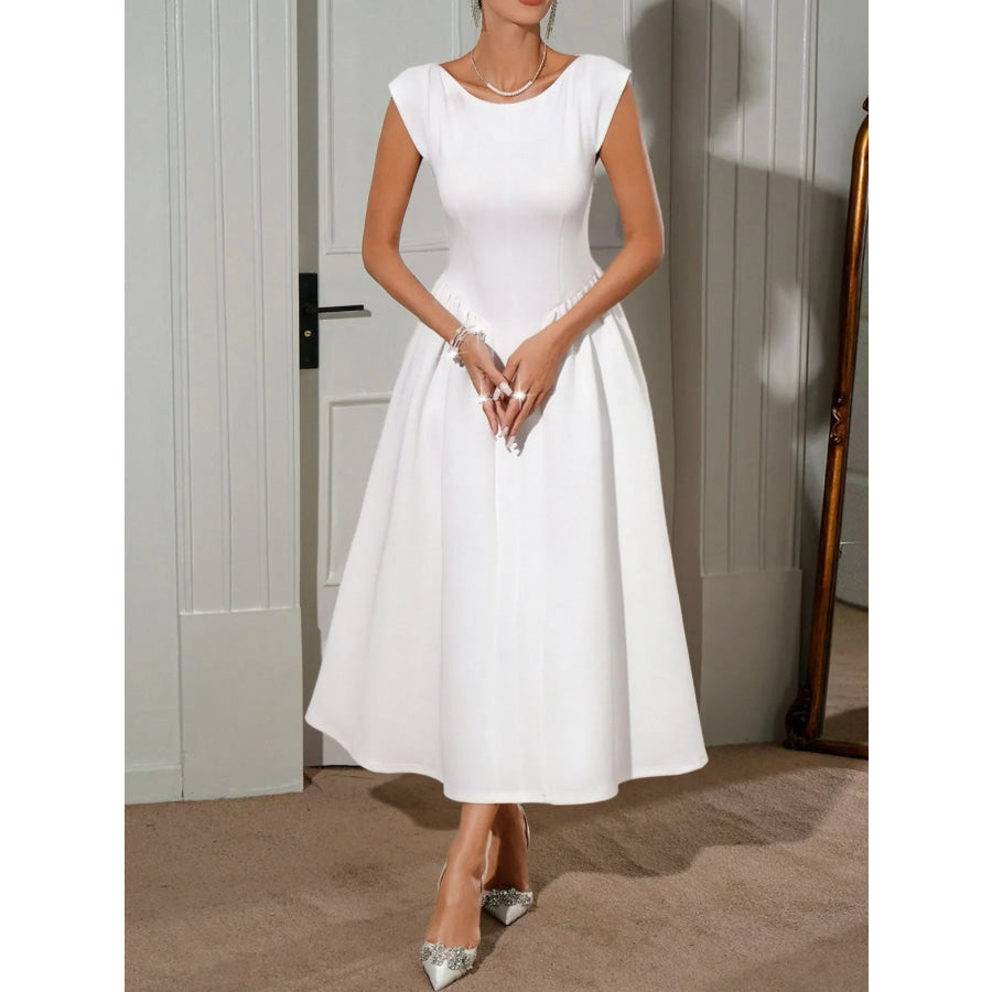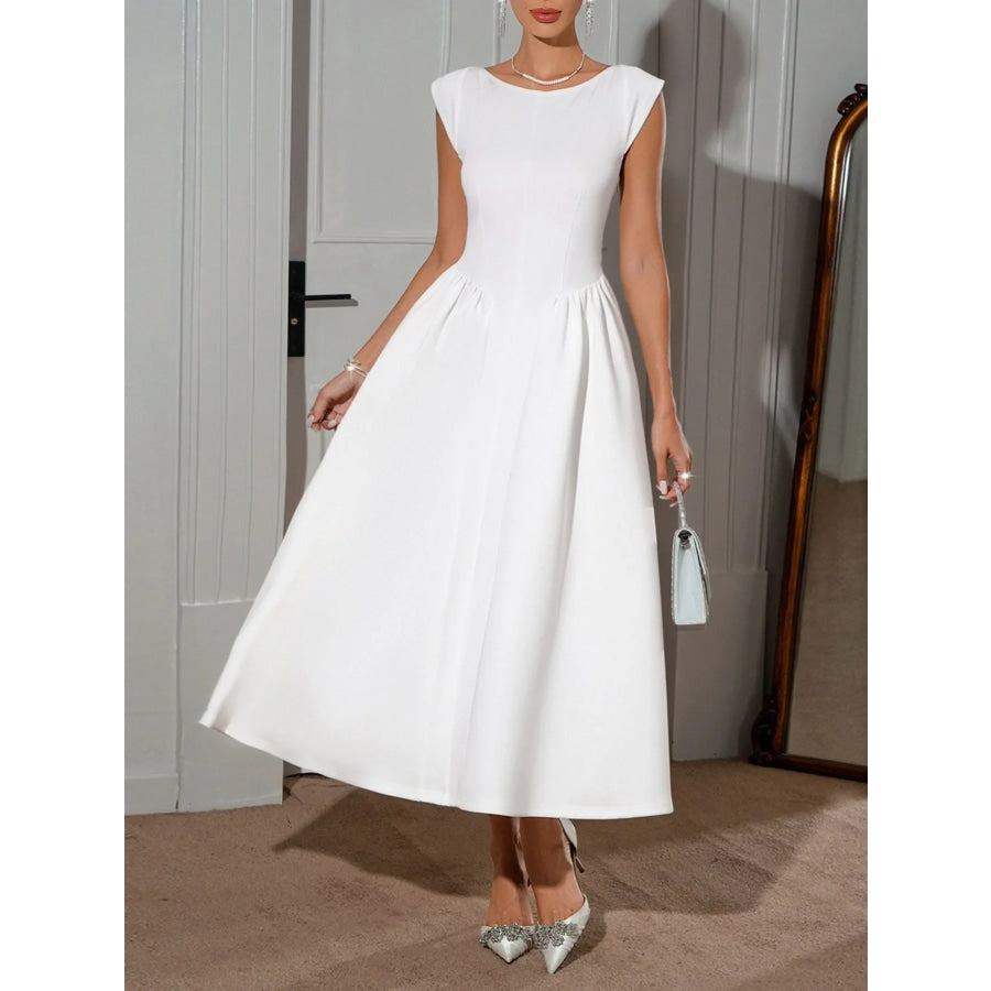 Round Neck Cap Sleeve Midi Dress