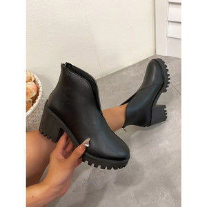 Round Toe Block Heels Boots