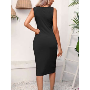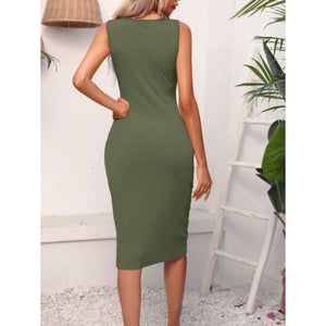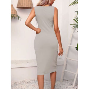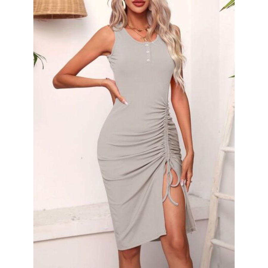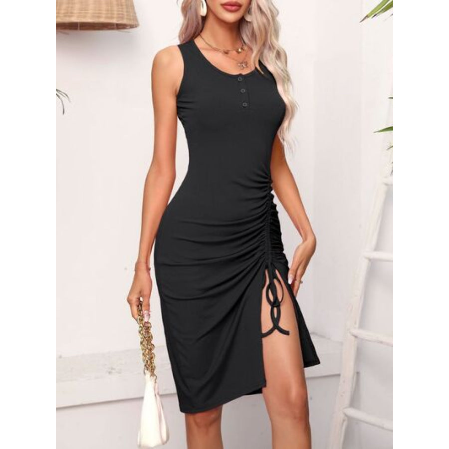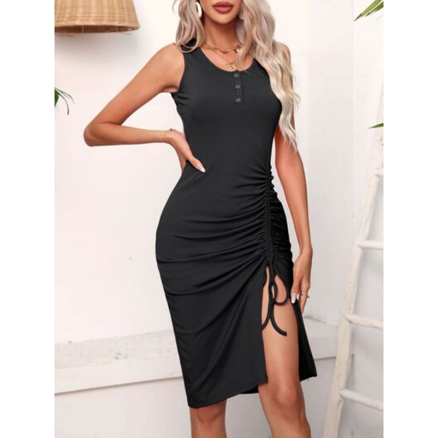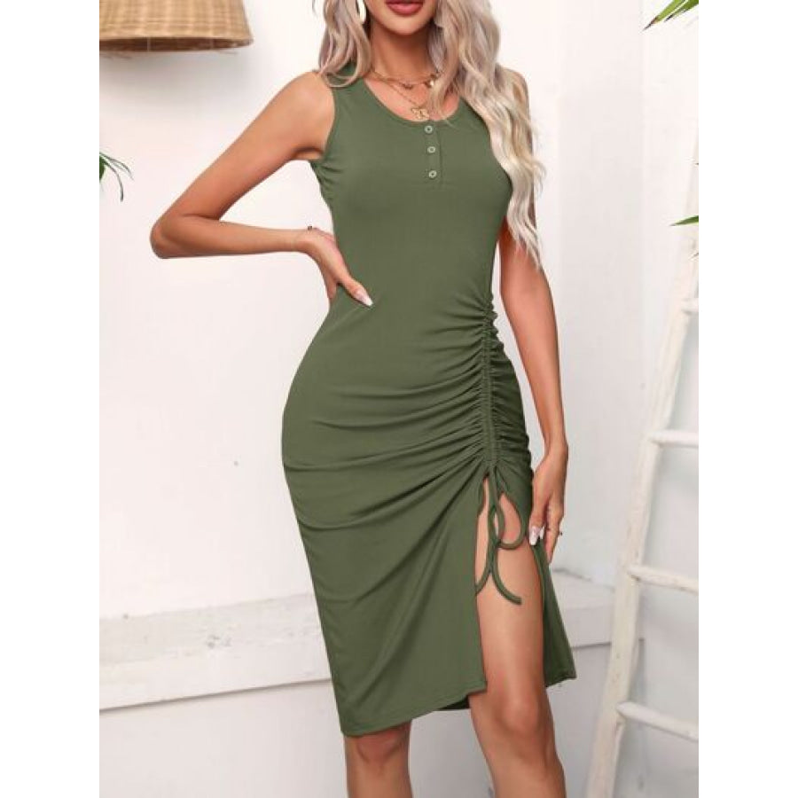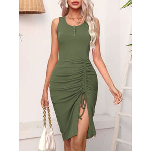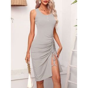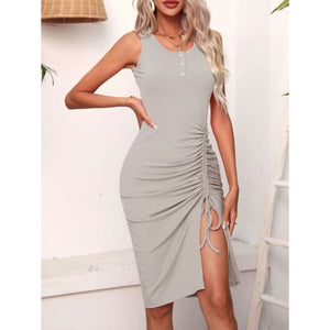 Ruched Drawstring Slit Tank Dress
