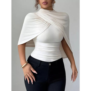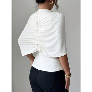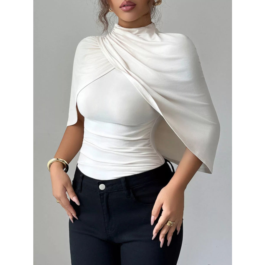 Ruched Mock Neck Shawl Half Sleeve Top