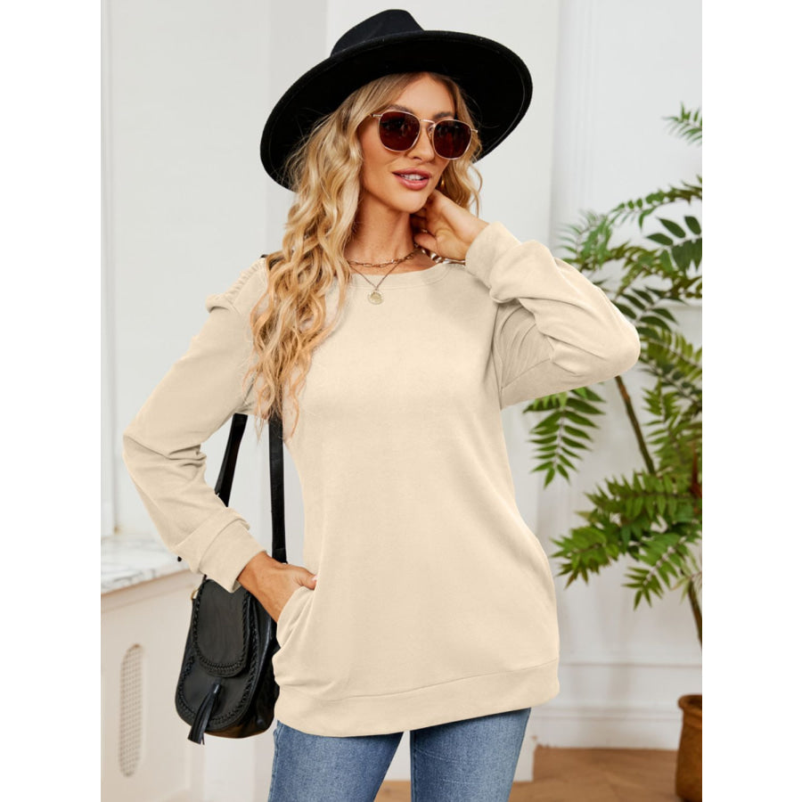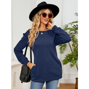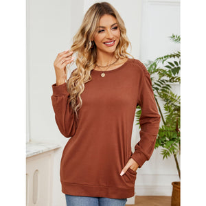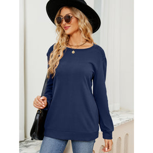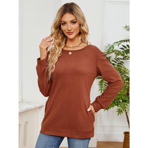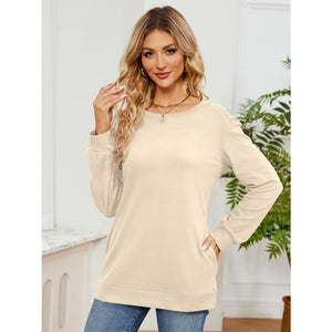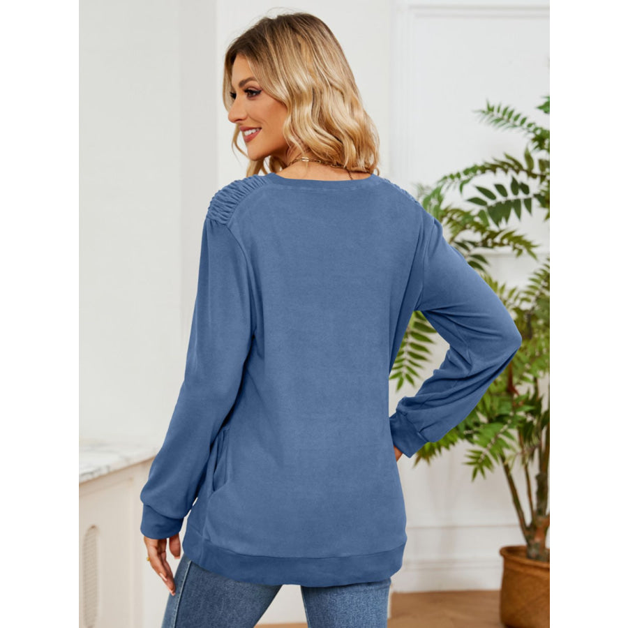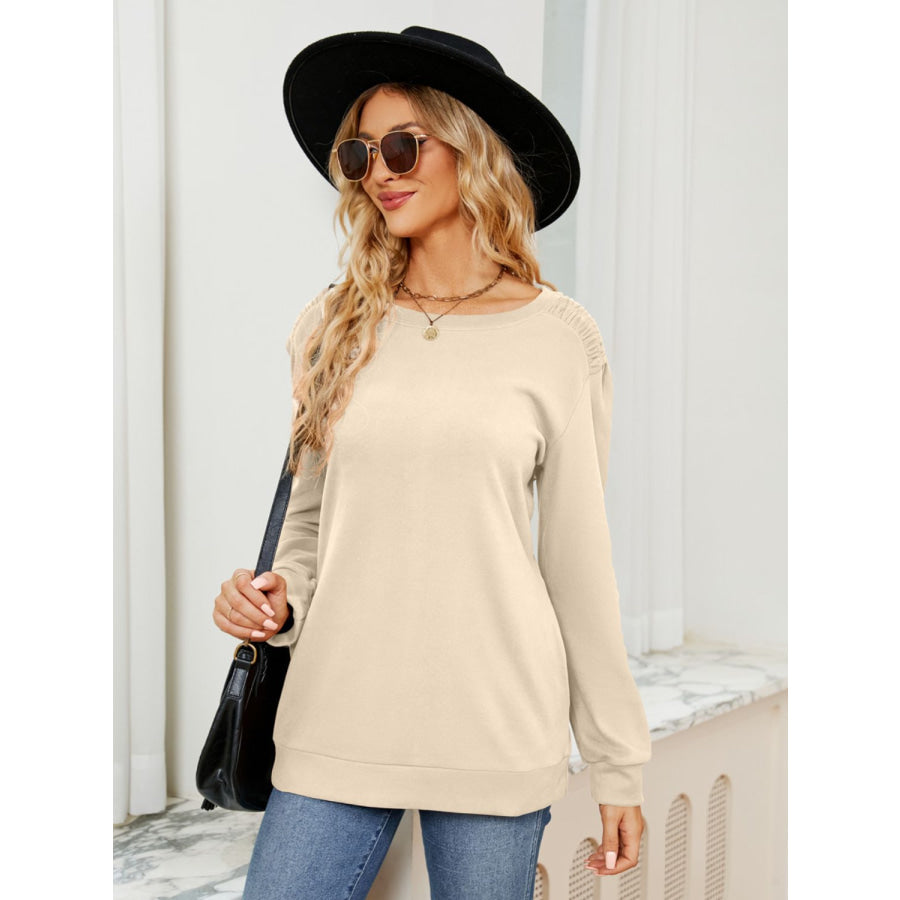Ruched Shoulder Round Neck Long Sleeve Sweatshirt
