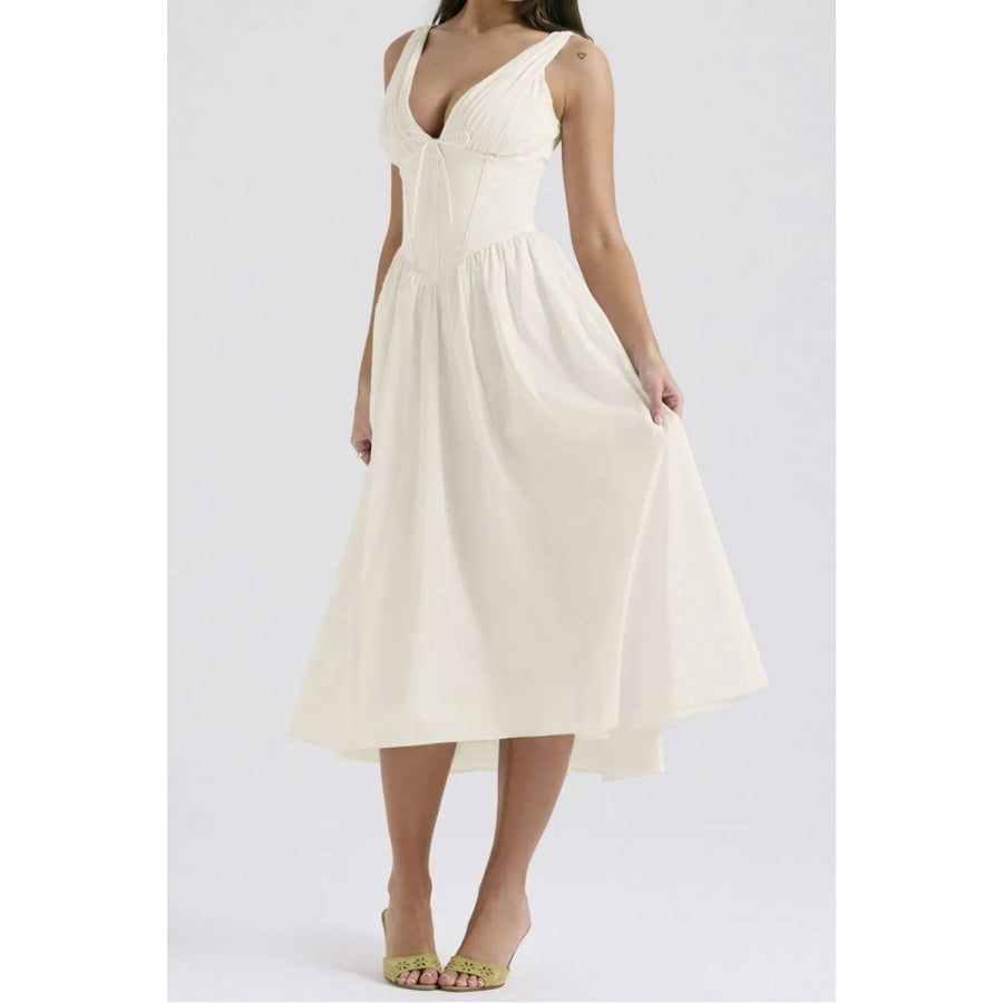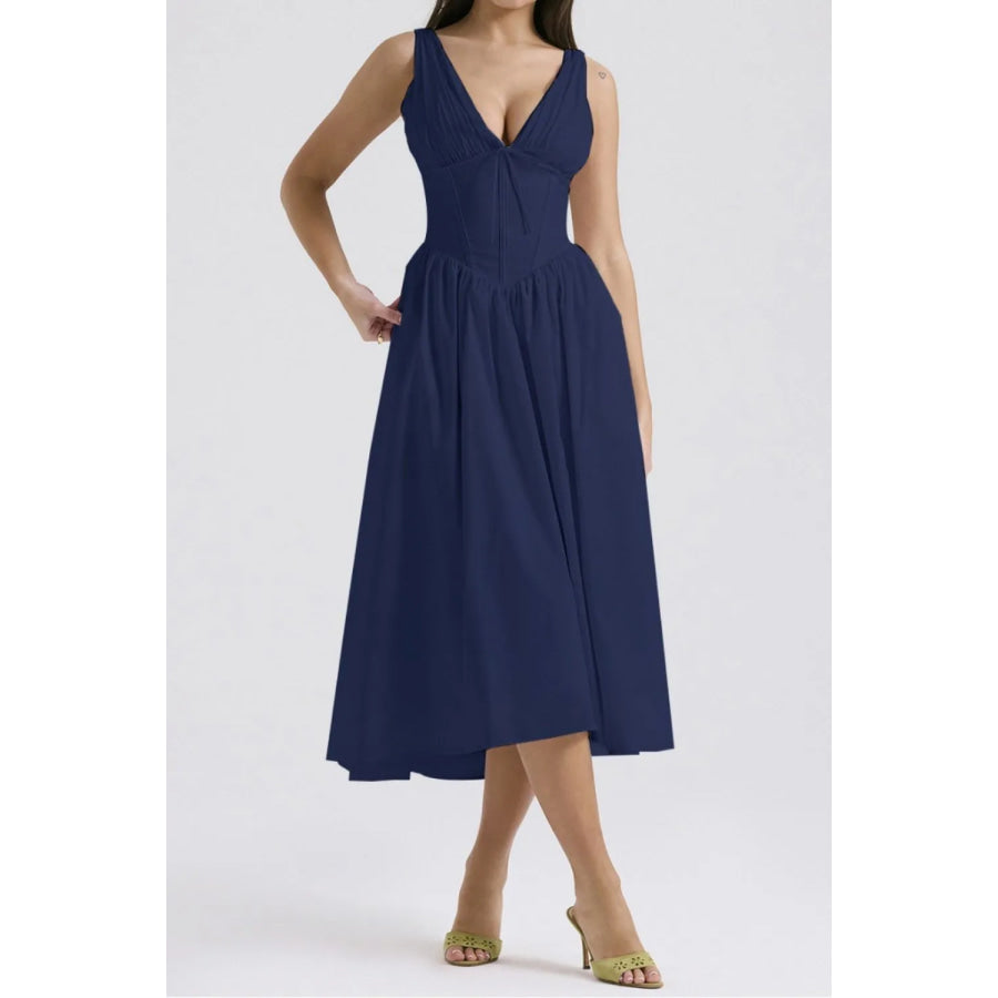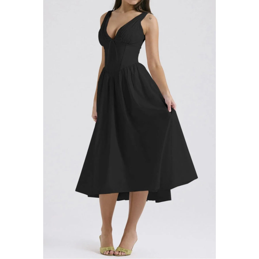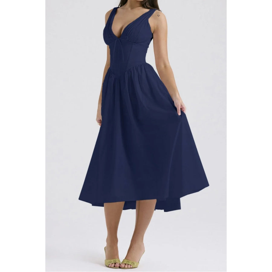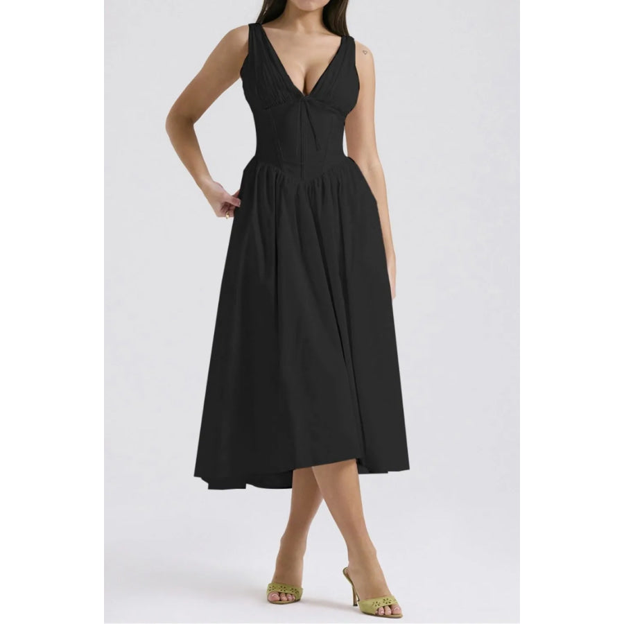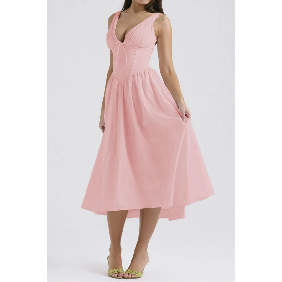 Ruched V-Neck Sleeveless Dress with Pockets