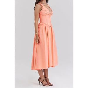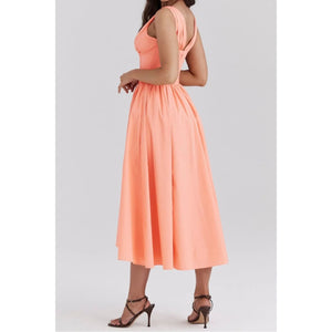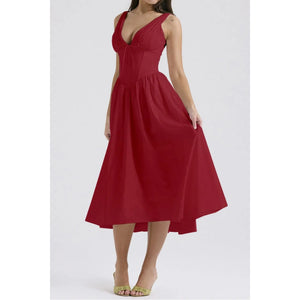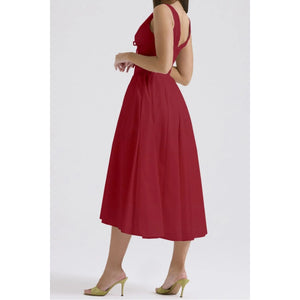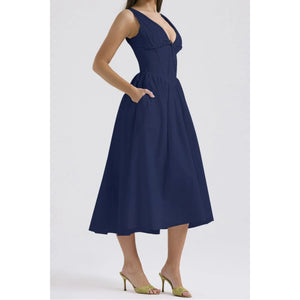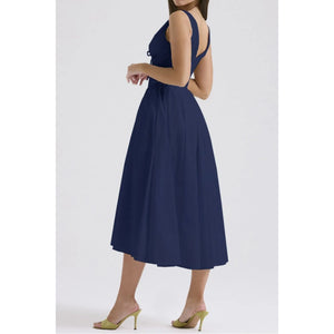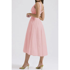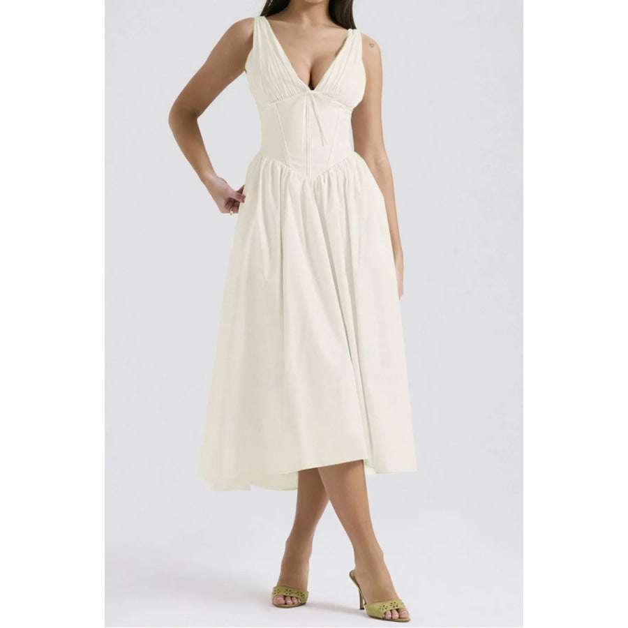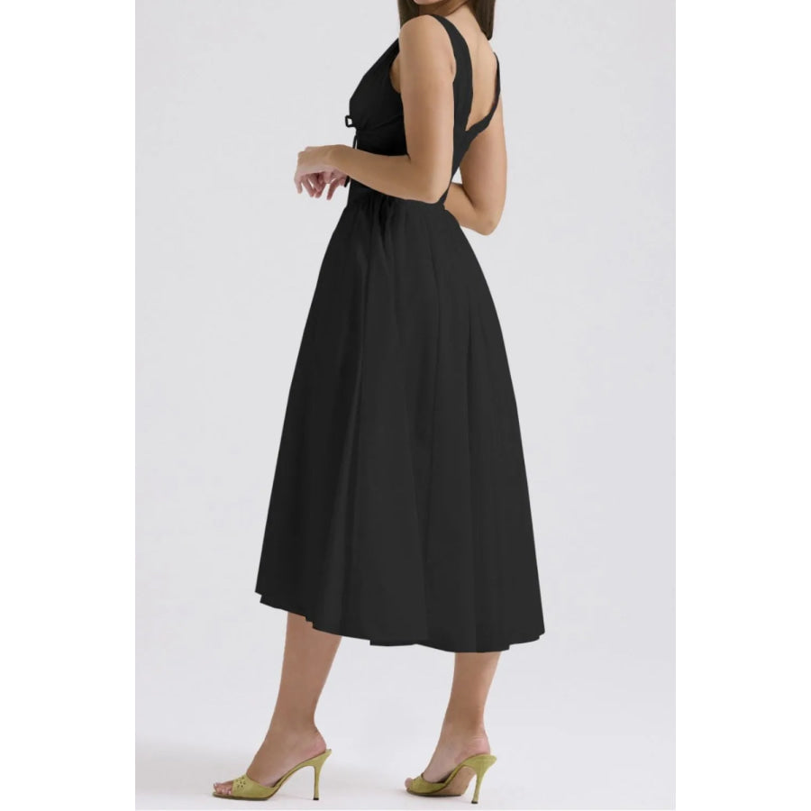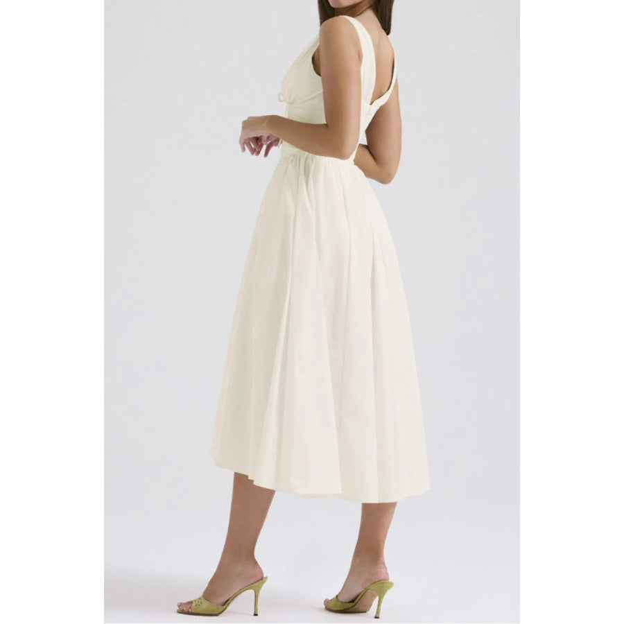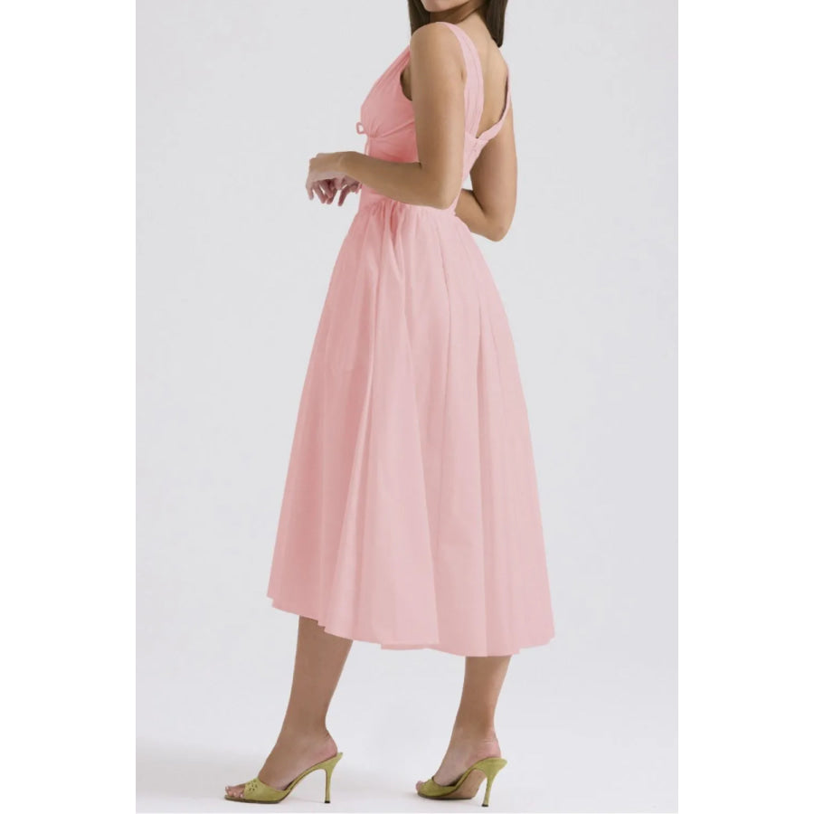 Ruched V-Neck Sleeveless Dress with Pockets