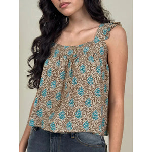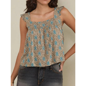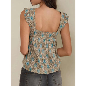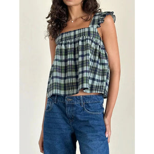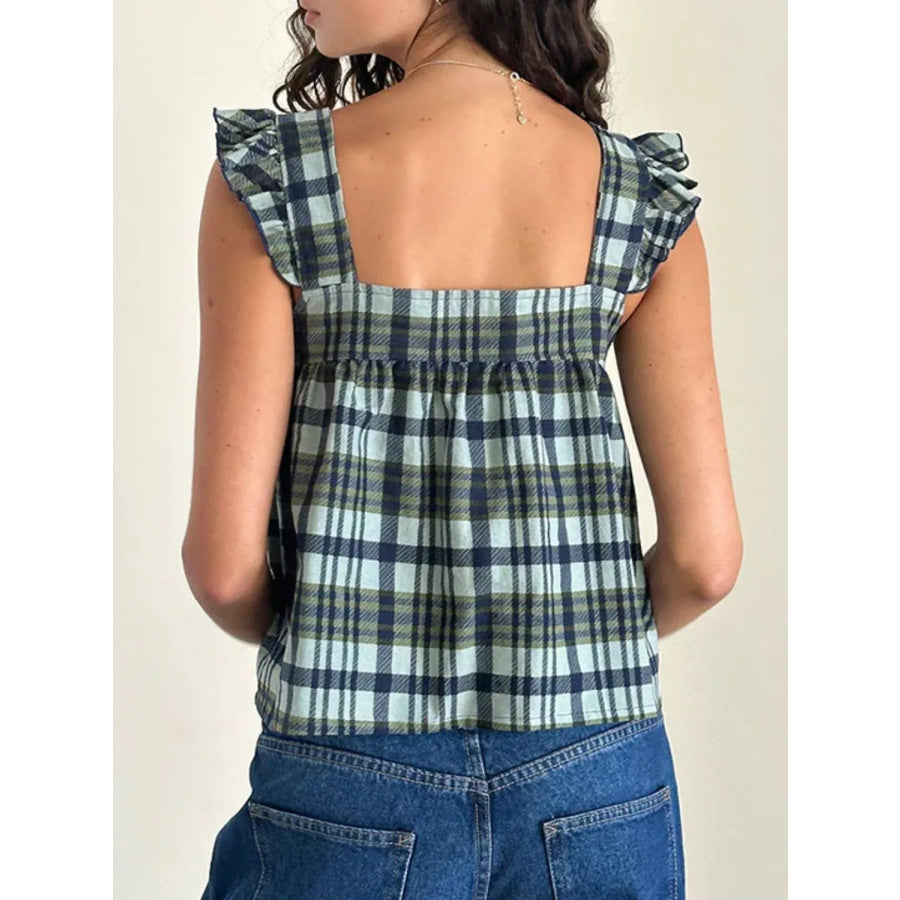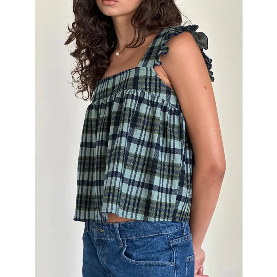 Ruffled Plaid Square Neck Tank
