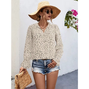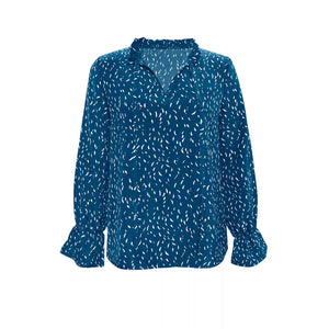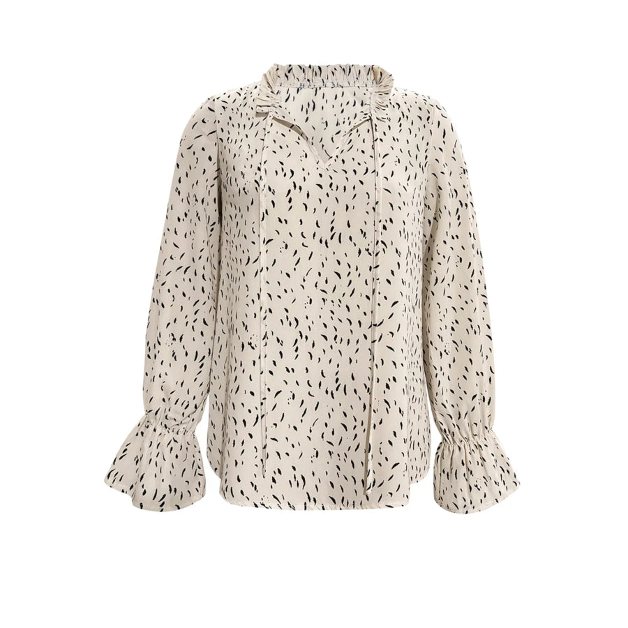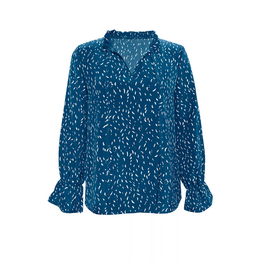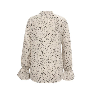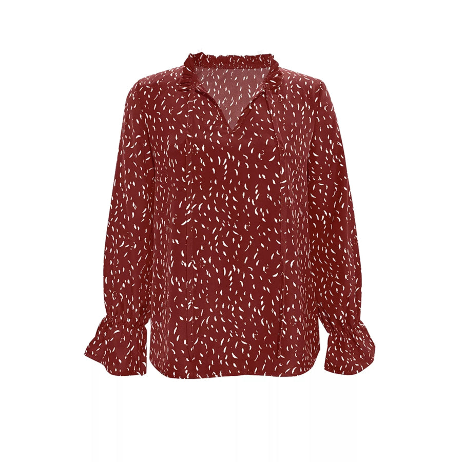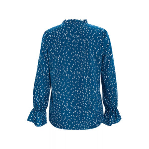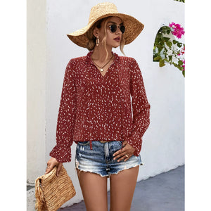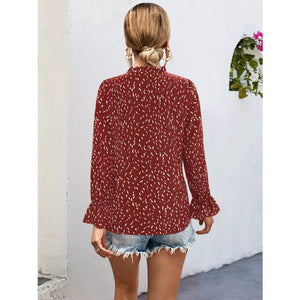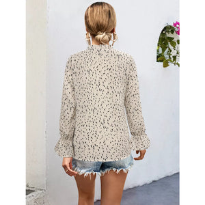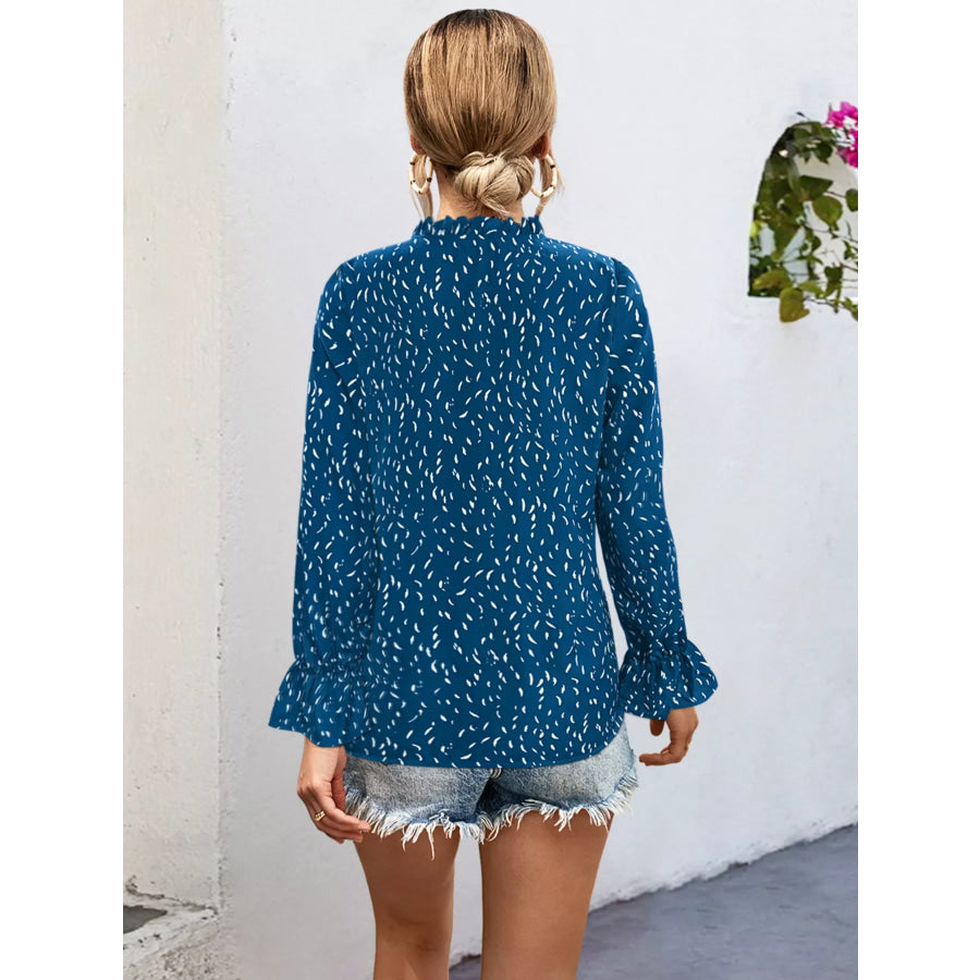 Ruffled Printed Tie Neck Long Sleeve Blouse