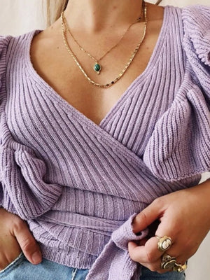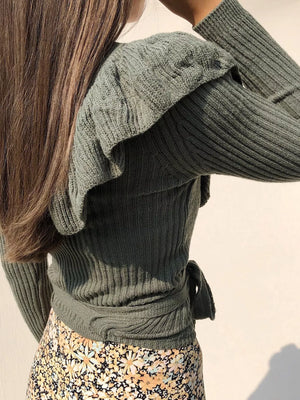 Ruffled Surplice Long Sleeve Knit Top