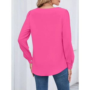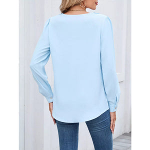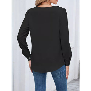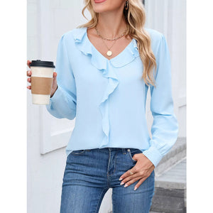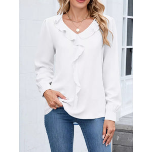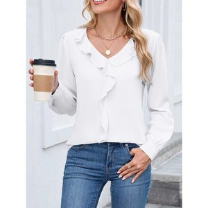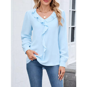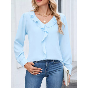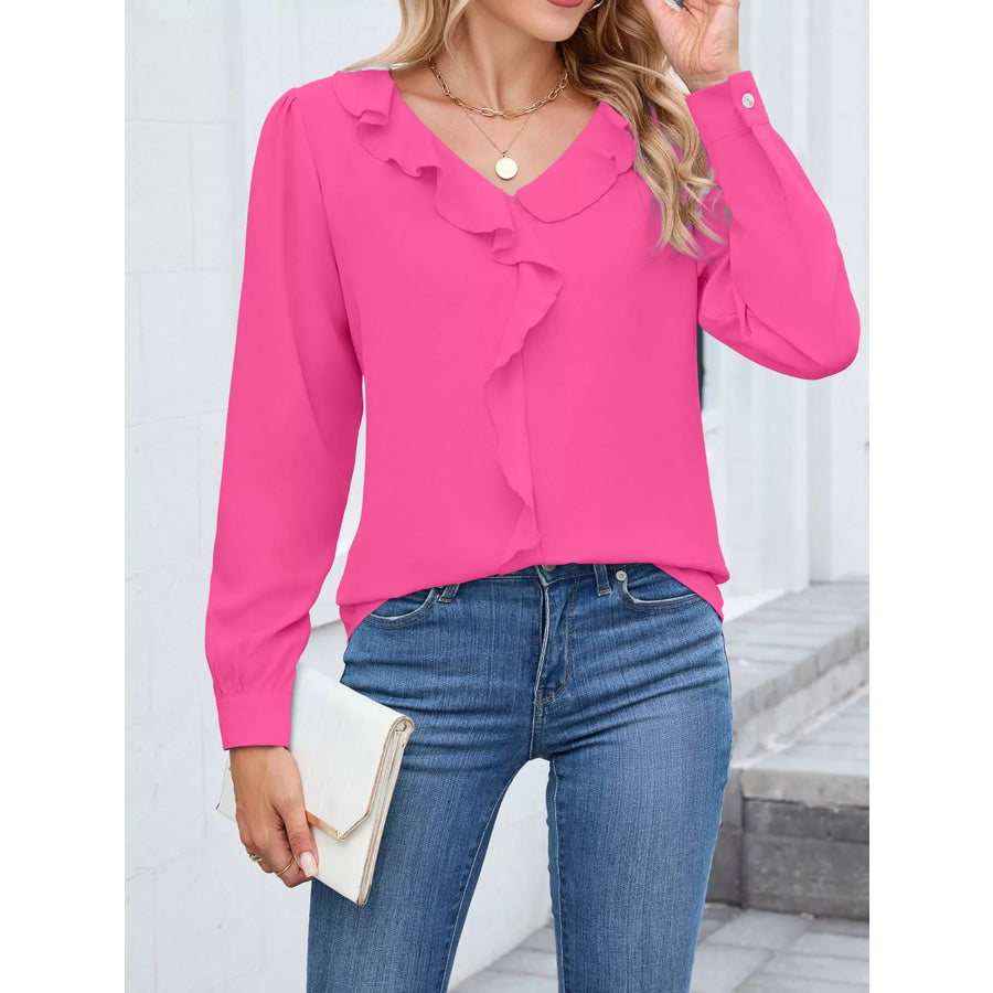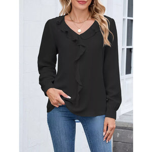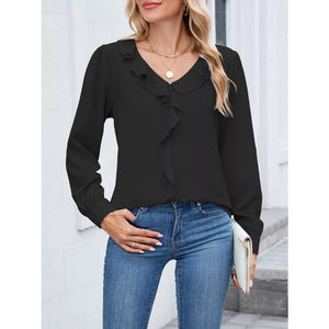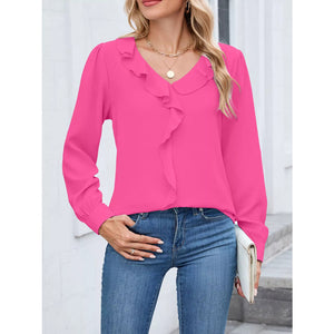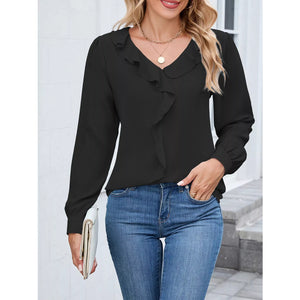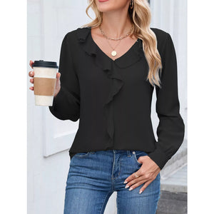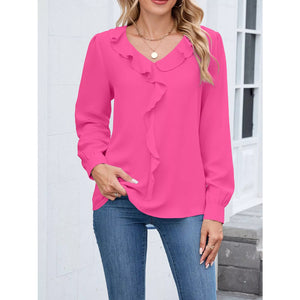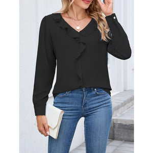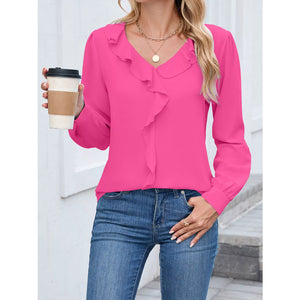 Ruffled V-Neck Long Sleeve Blouse
