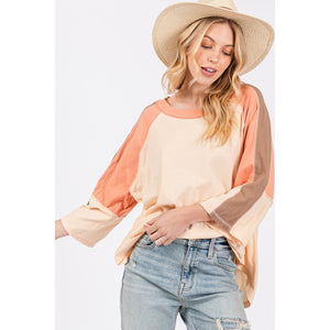 SAGE + FIG Color Block Curved Hem T-Shirt