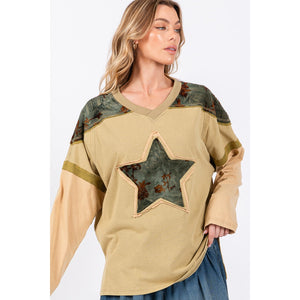 SAGE + FIG Star Patch Long Sleeve Color Block T-Shirt