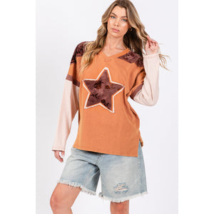 SAGE + FIG Star Patch Long Sleeve Color Block T-Shirt